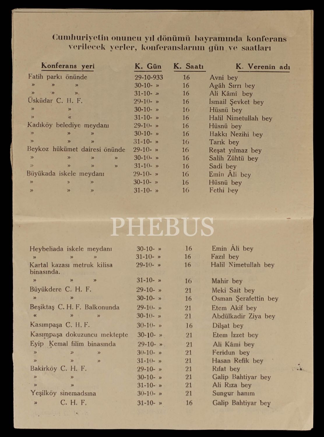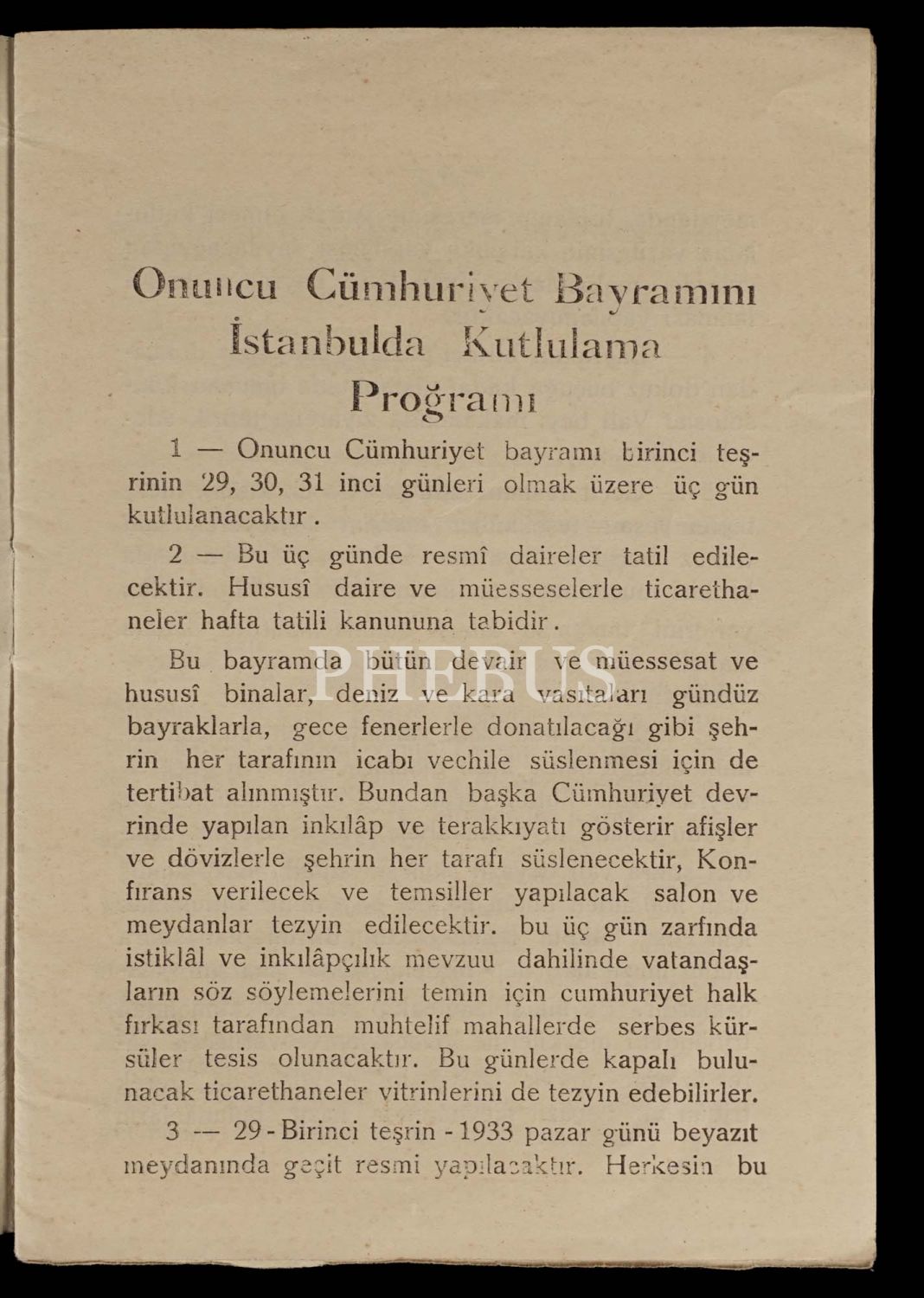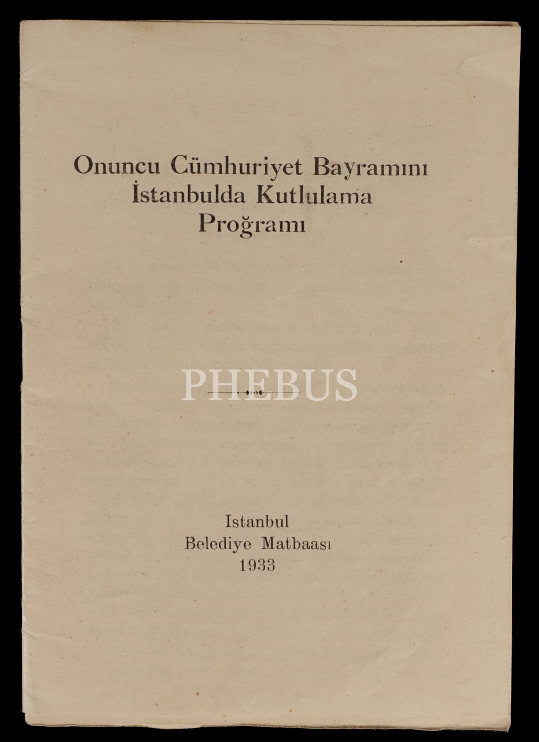 ONUNCU CÜMHURİYET BAYRAMINI İSTANBULDA KUTLULAMA PROĞRAMI, 1933, Belediye Matbaası, İstanbul, 18 sayfa, 12x17 cm...