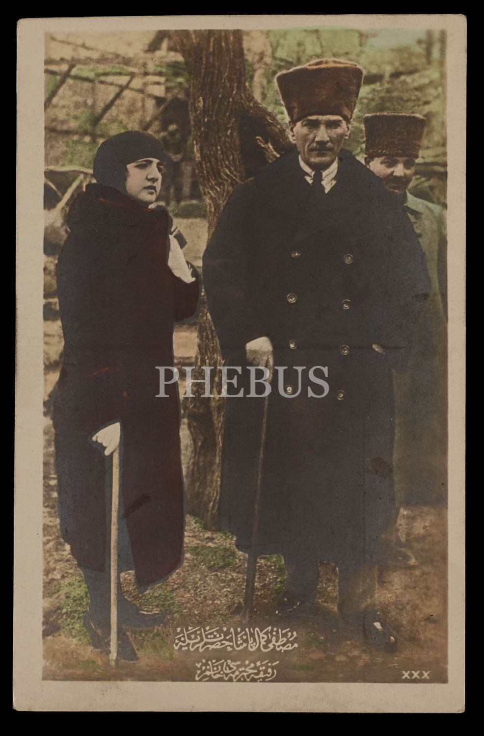 Mustafa Kemal Atatürk, Ankara´da eşi Latife Hanım ile birlikte, 3 Mart 1923, elle renklendirilmiş, 9x14 cm...