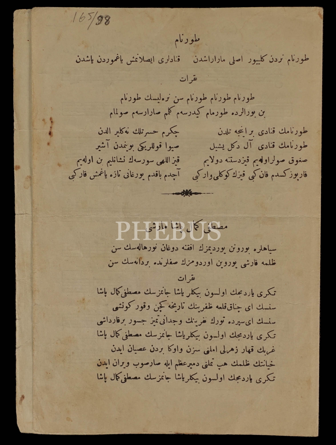 Mustafa Kemal Paşa marşı ve Turnam şarkısının notası, Şamlı İskender, 4 sayfa, 15x20 cm...