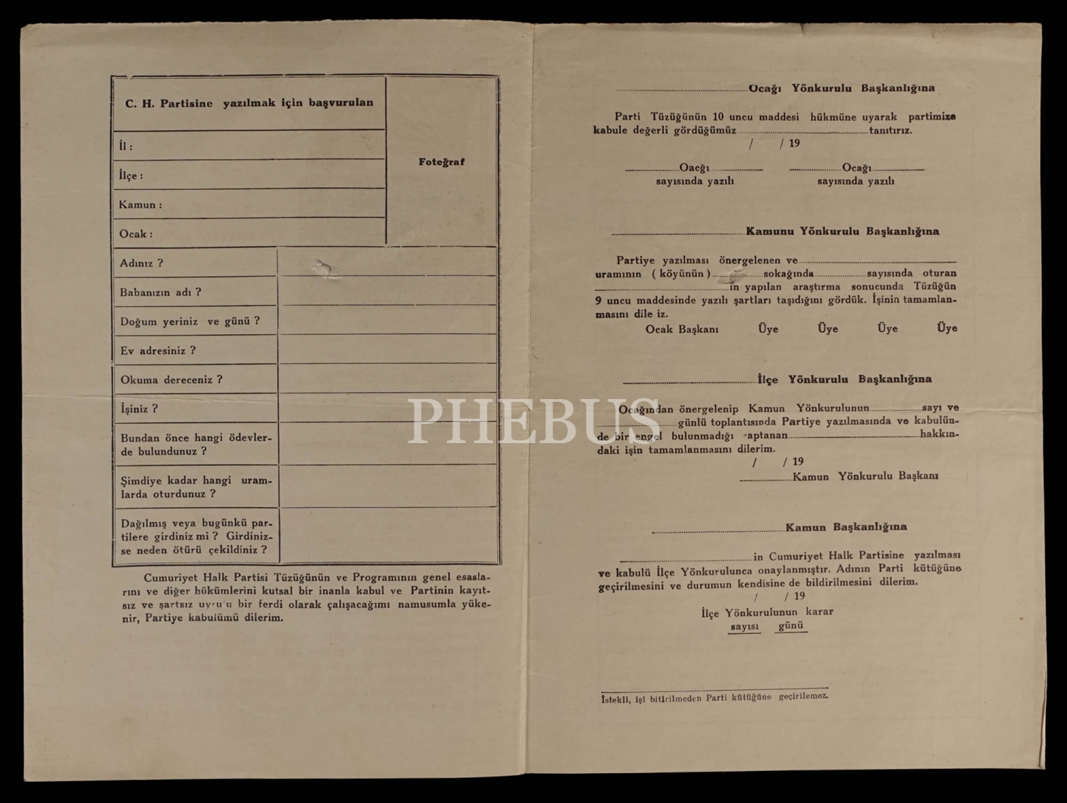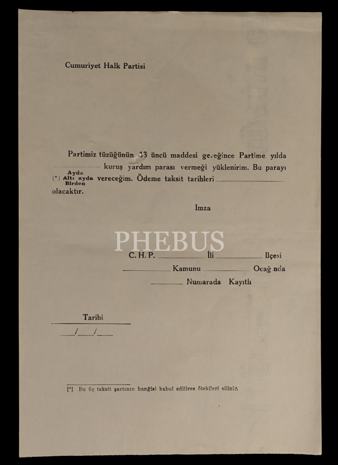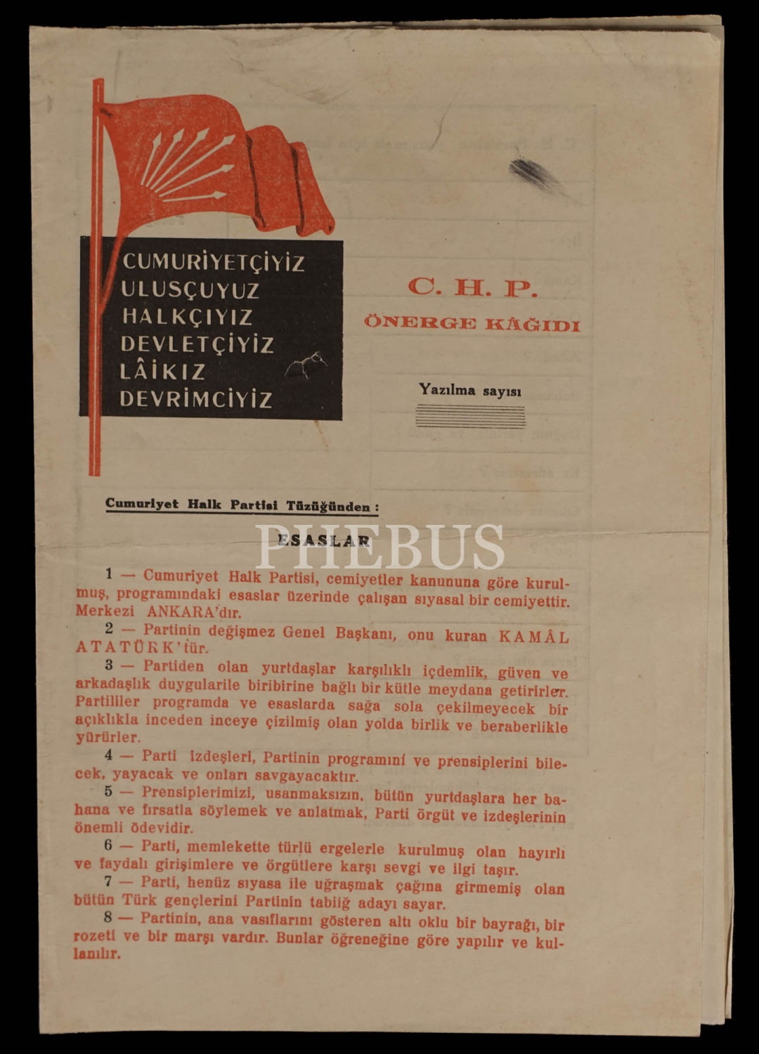 Kâğıdın ön kapağında "Cuhuriyet Halk Partisi Tüzüğünden Esaslar", arka kapağında ise "Cumhuriyet Halk Partisinin Ana Vasıfları" yazılıdır.