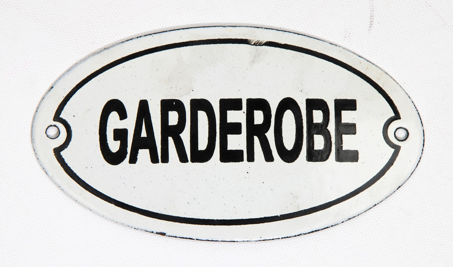 GARDEROBE yazılı emale tabela, 13x7 cm