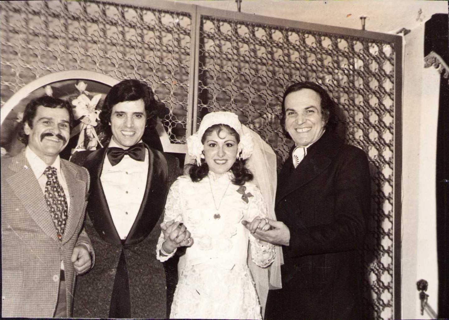 Erol Büyükburç'un nikah töreninde soldan sağa; Metin Ersoy, Emel Büyükburç, Erol Büyükburç, Aydın Tansel, 12x8 cm