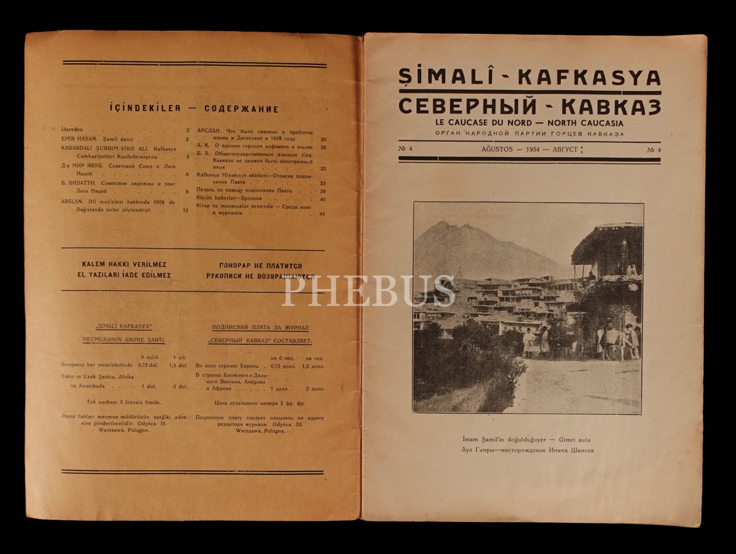 ŞİMALÎ KAFKASYA,1934, Barasbi Baytuğan, sayı:4, 44 sayfa, 20x28 cm...