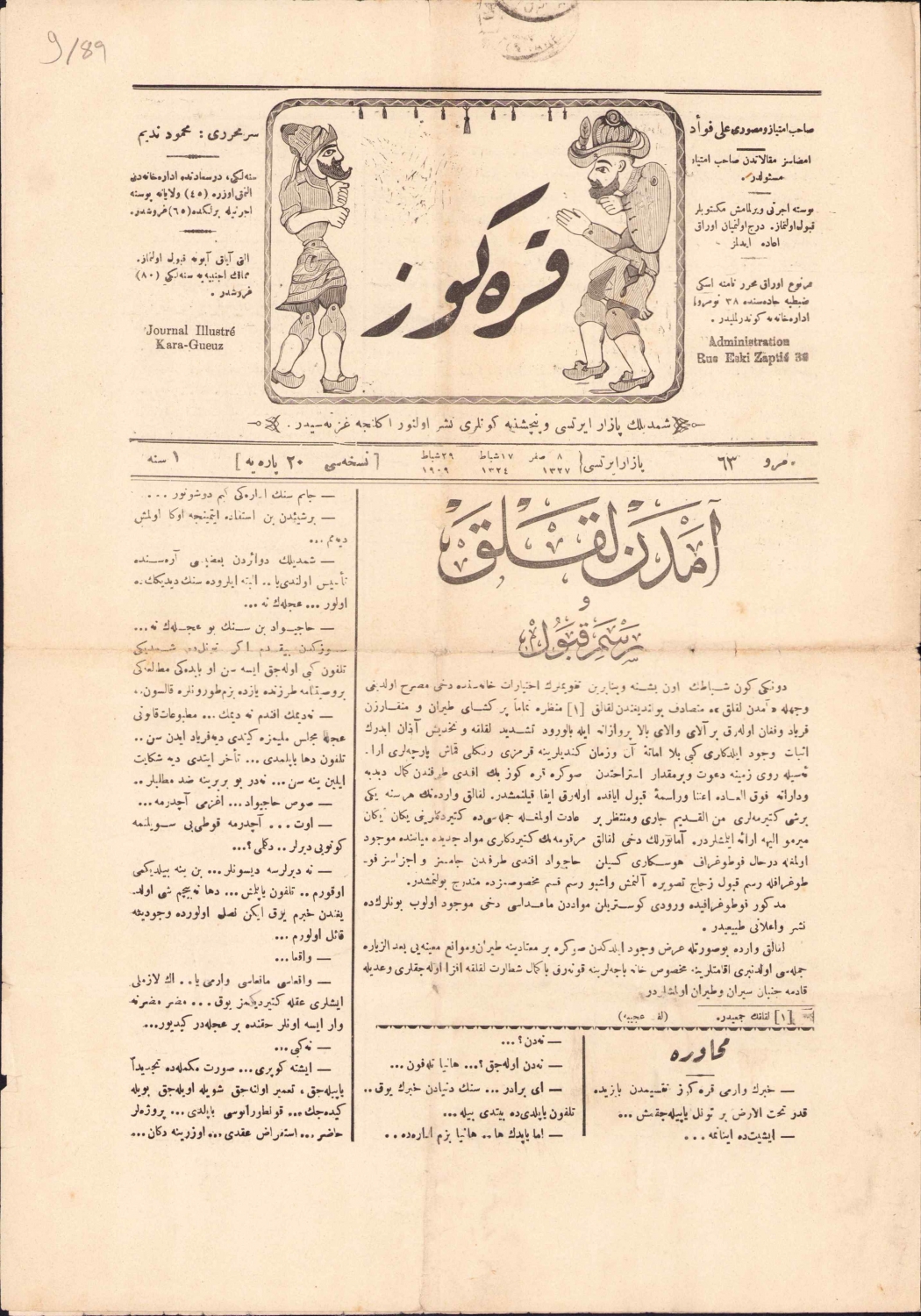 Osmanlıca Karagöz gazetesi 1324 tarihli, 4 sayfa, 28x40 cm