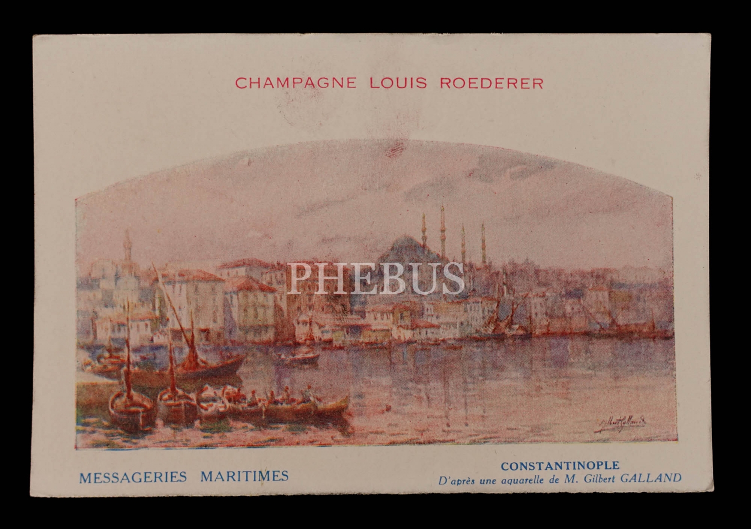 Boğazdan İstanbul manzarası,"Champagne Lois Roederer, Constantinople", ed.: Dauvissat, Parised, 14x9 cm...