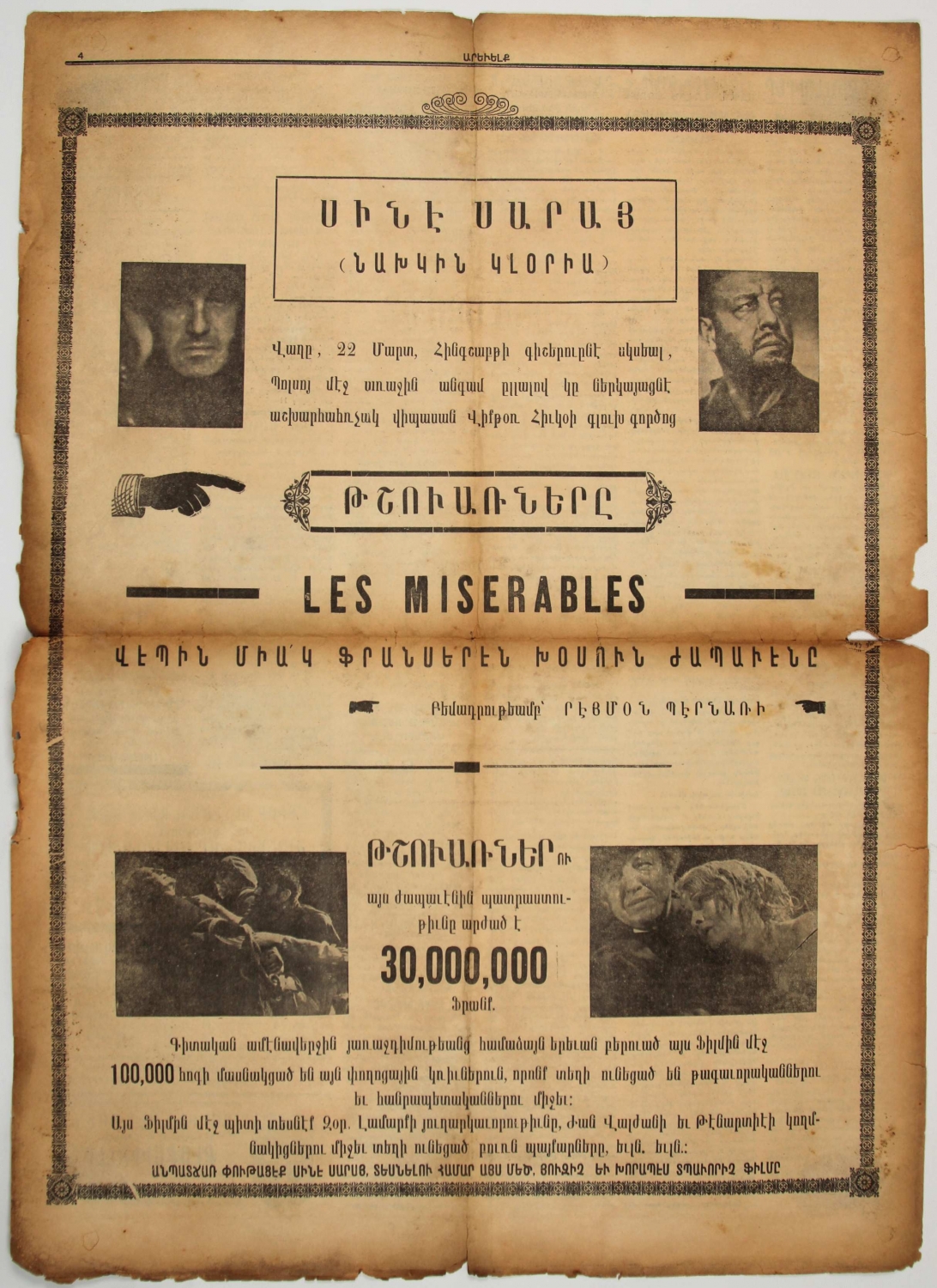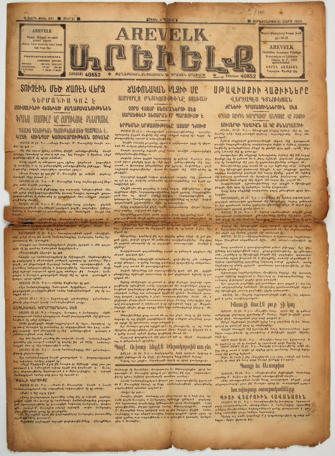 Arevelk Ermenice gazete, 1934, 4 sayfa, 40x56 cm