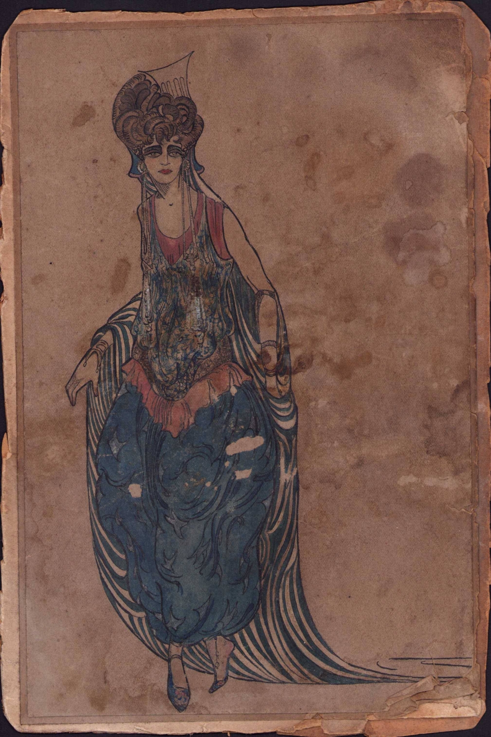Oryantel kadın çizimli kartonet, 17x25 cm