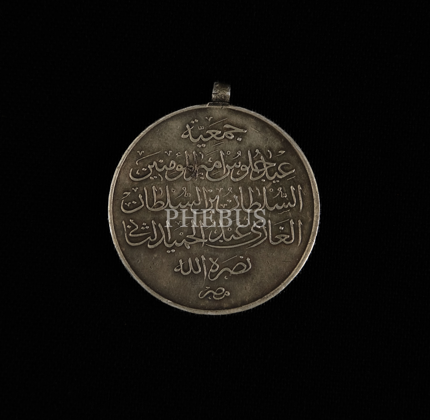 Arka yüz: "Cemiyyet-i Iyd-ı Cülus Emir'ül-müminin Sultan bin Sultan el-Gazi Abdülhamid-i Sani Nasrullah (Mısır)" yazılıdır.