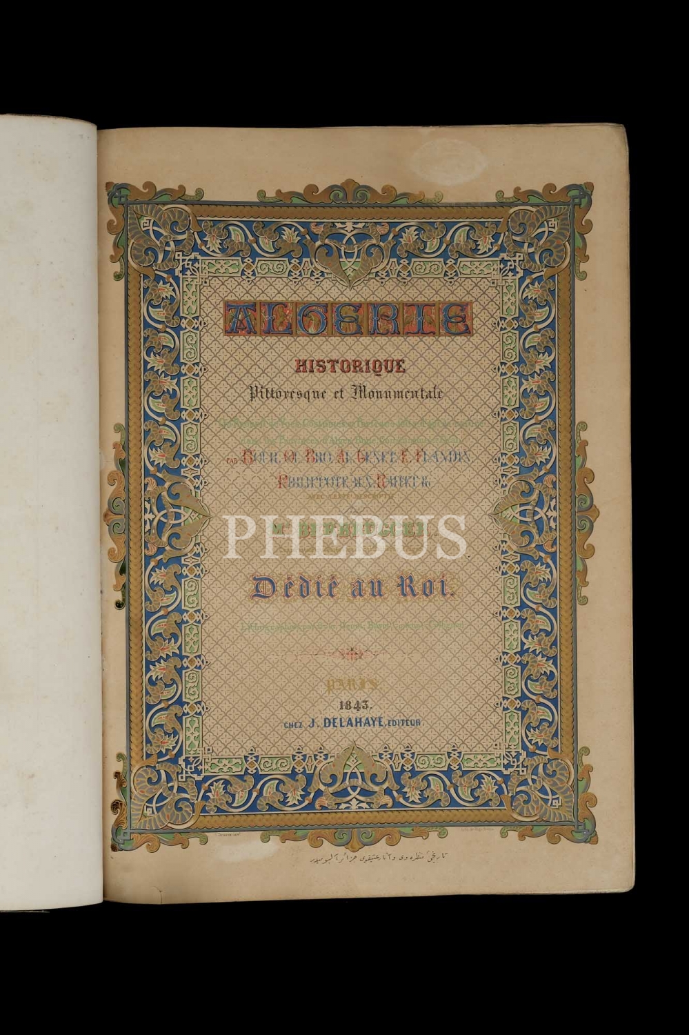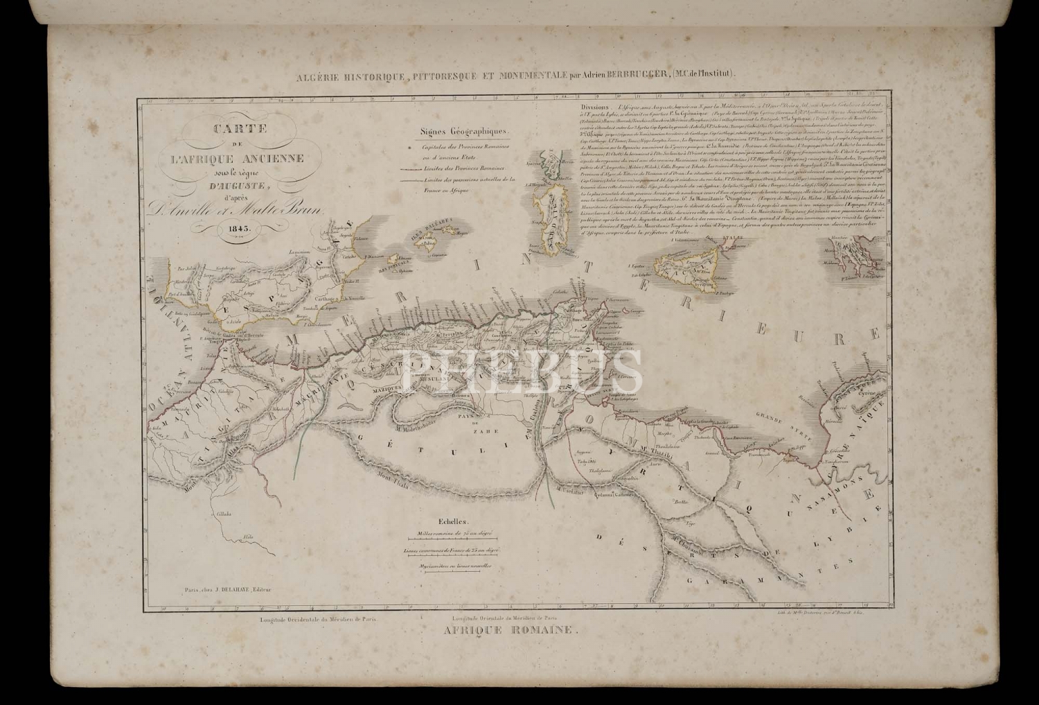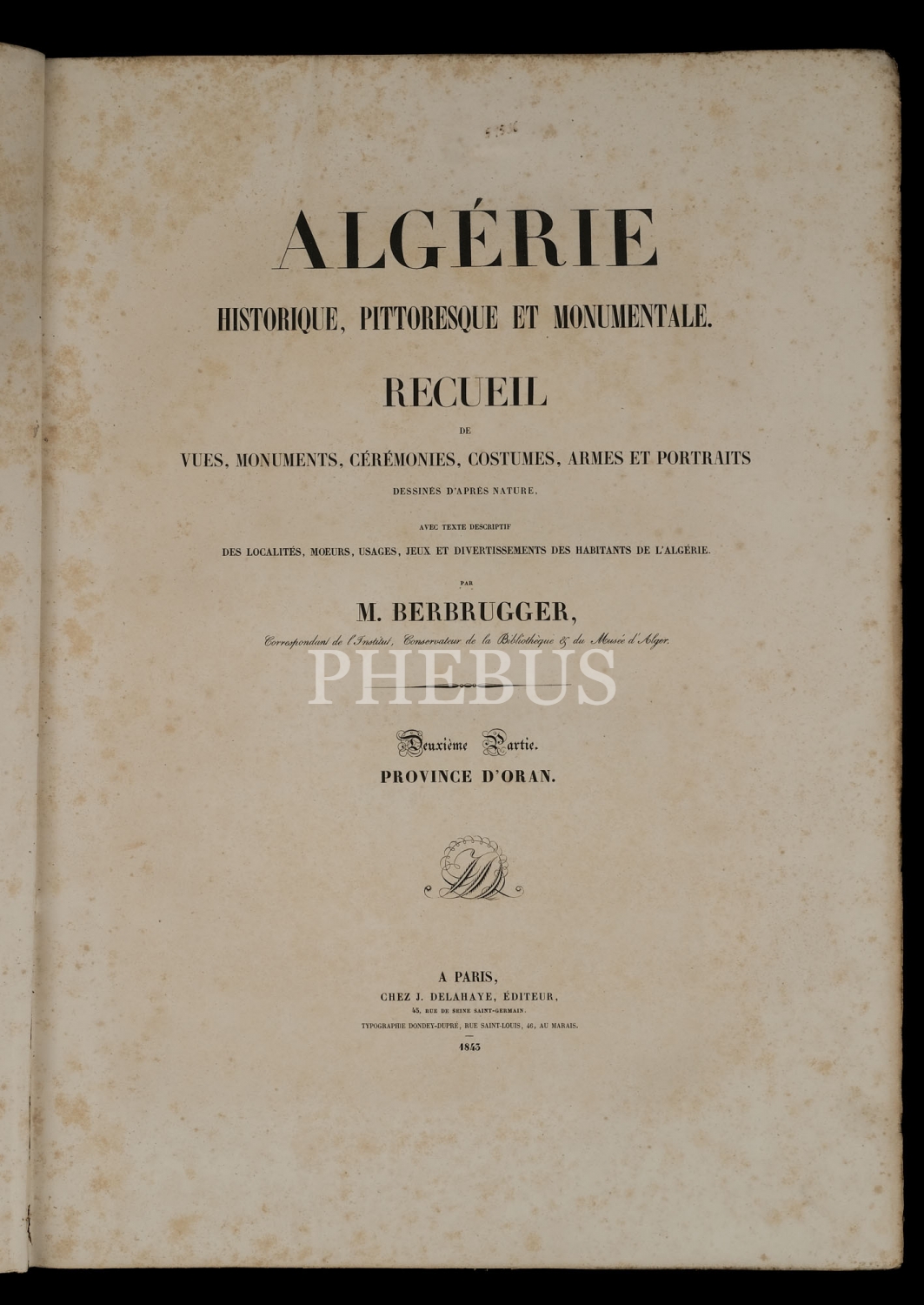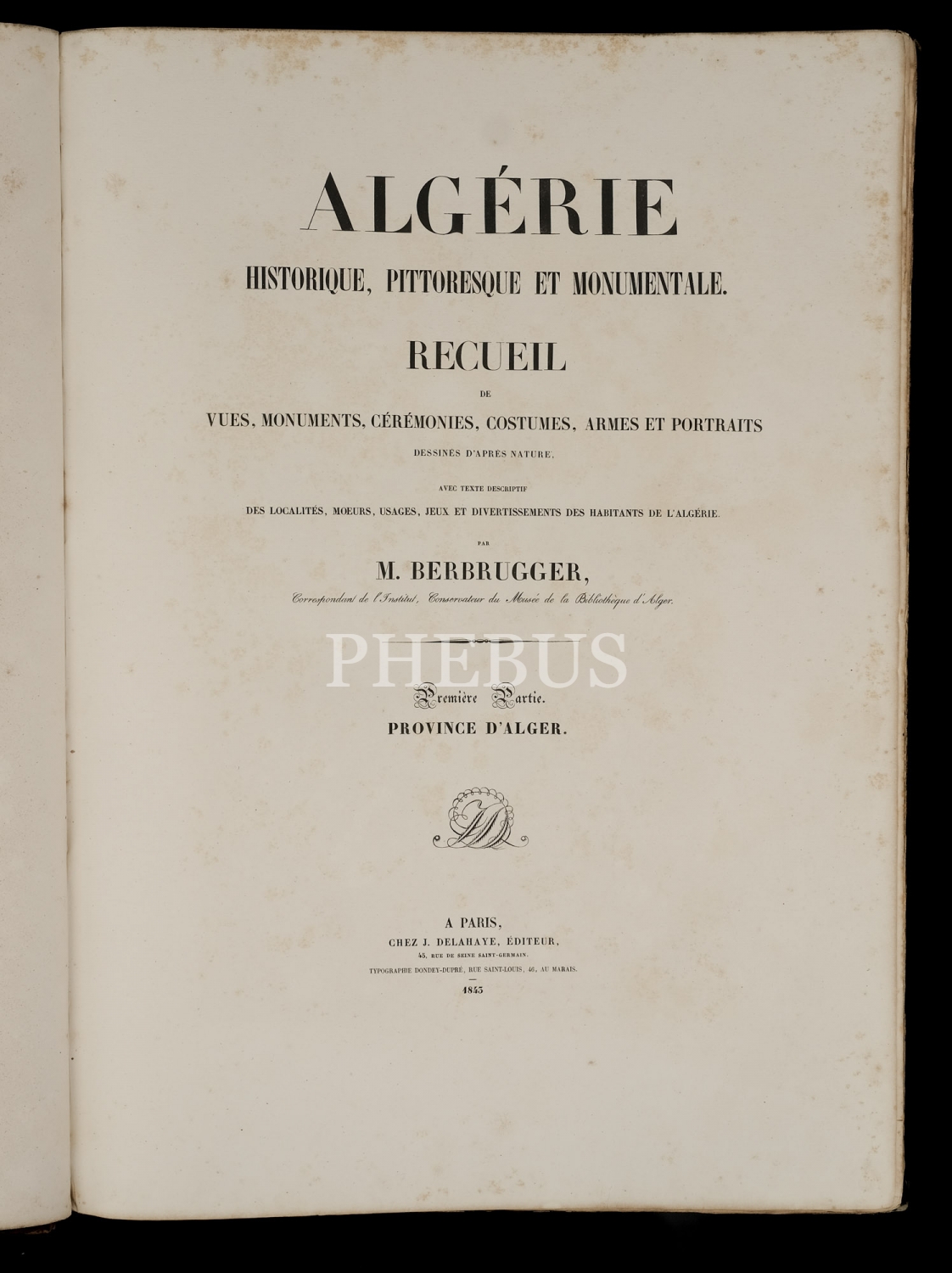 ALGERIE (HISTORIQUE, PITTORESQUE ET MONUMENTALE), (3 Cilt, 5 Bölüm), editör: Louis-Adrien Berbrugger, 1843, Chez. J. Delahaye, editeur, Paris, 43x59 cm...
