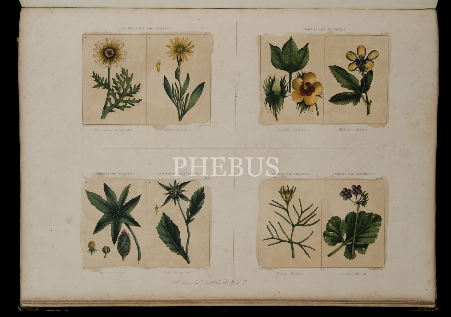 2) FLORE DE L´ALGERIE (Cezayir Florası), metin: P. Champy - desenler: Th. Toulet, 1843, Chez. J. Delahaye, editeur, Paris, 16 sayfa. İçerik: Her birinde elle renklendirilmiş dört adet bitki/ağaç resmi yer alan 10 levha.