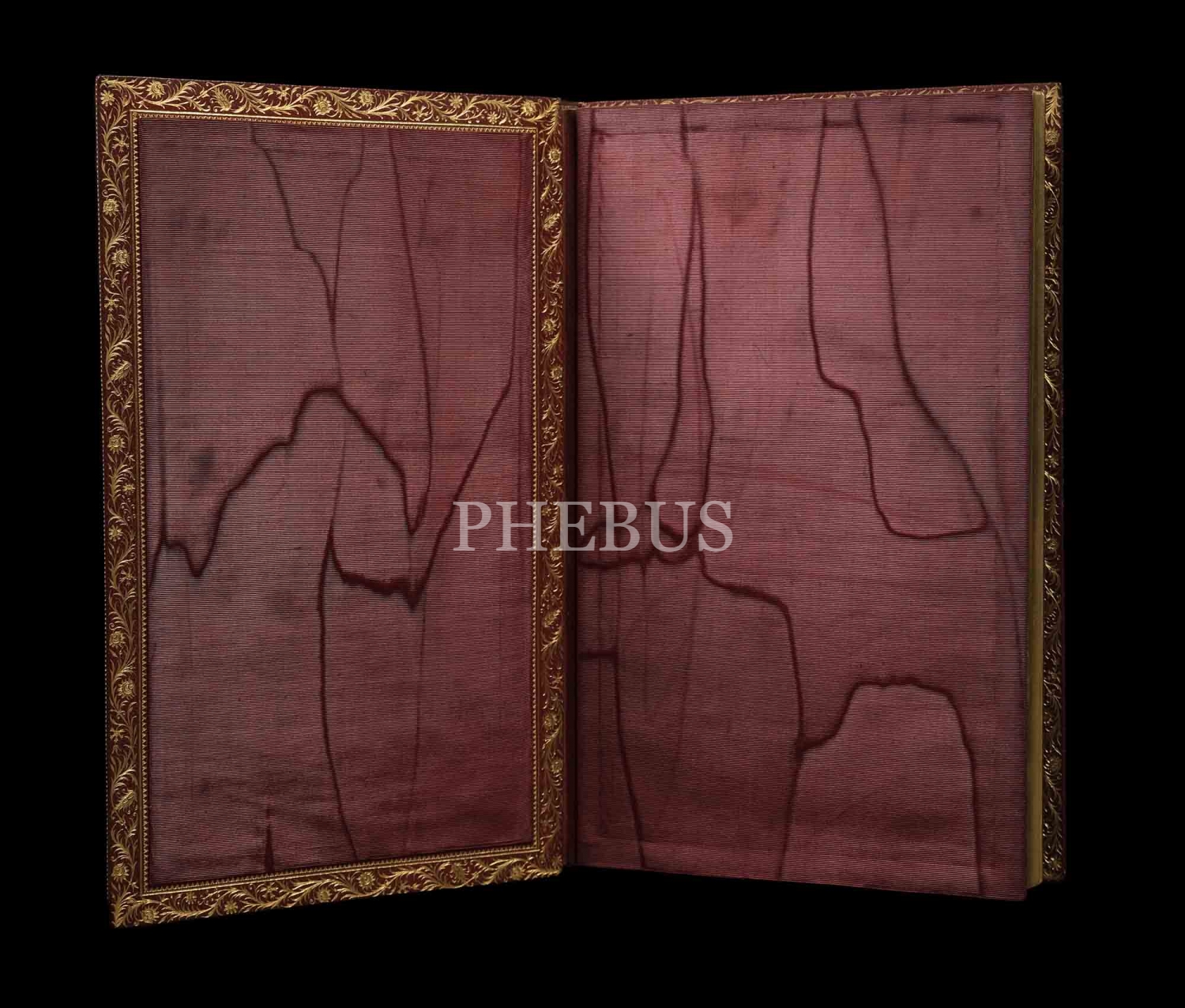 Kraliçe için özel olarak son derece zarif motiflerle ciltlenen eserin ön kapağında altın yaldızlı bir "E" monogramı ile kraliçe tacı yer almaktadır. İç kapakları bordo kadifeyle kaplanmış eserin sayfa kenarları yaldızlıdır.