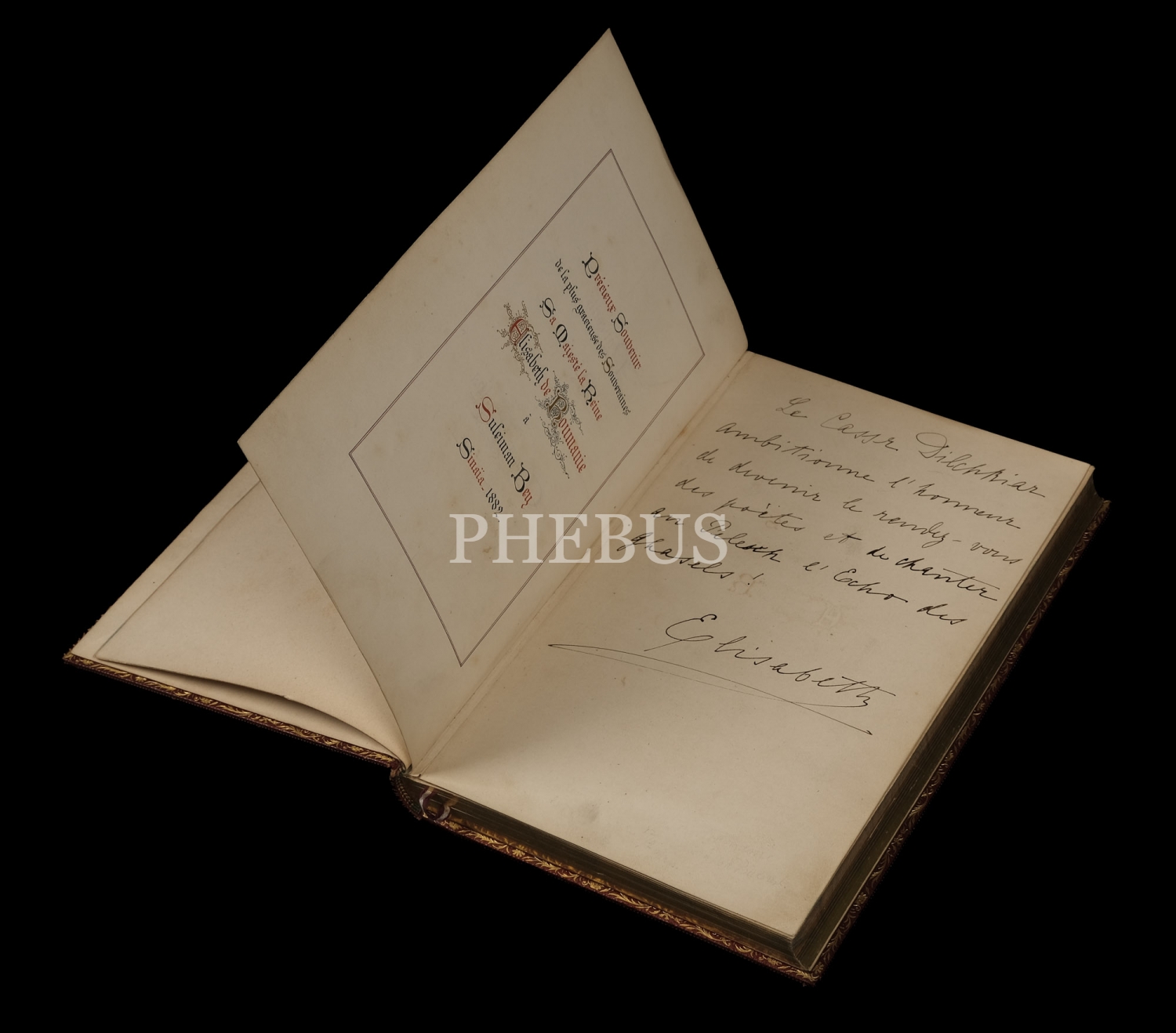 Kraliçe'nin Osmanlı Elçisi Süleyman Bey'e özel olarak takdim ettiği kitaba ayrıca eklenmiş ve altın yaldızla süslü, harika bir kaligrafiyle yazılmış bir sayfanın ön yüzüne kitabın ve yazarın adı, arka yüzüne ise "Hükümdarların en merhametlisi Majesteleri Elisabeth de Boumani'den Süleyman Bey'e, Sina 1882" ithafı yer almaktadır. Bu ithaf sayfasının yanındaki sayfada el yazısıyla ve "Elisabeth" imzasıyla tarihsiz bir Fransızca ithaf daha mevcuttur.