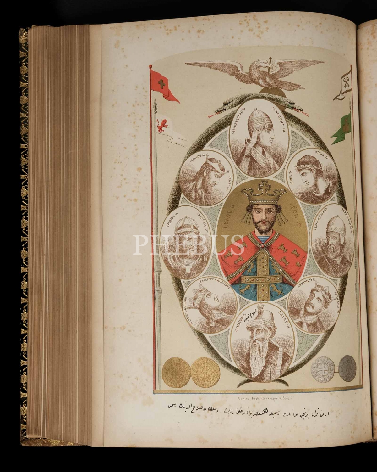 Kitabın arka iç kapağında bulunan zarf içerisinde Hatum Sülalesi dönemi zaman çizelgesi ve Kral Levon imzalı bir ferman konulu iki adet planş yer almaktadır.