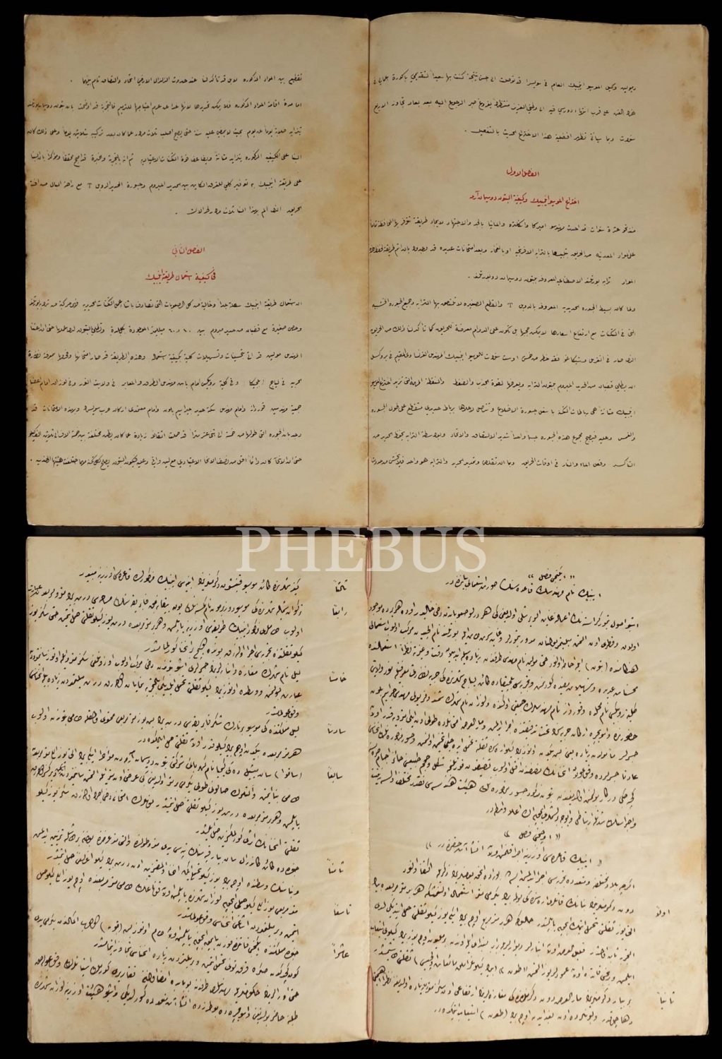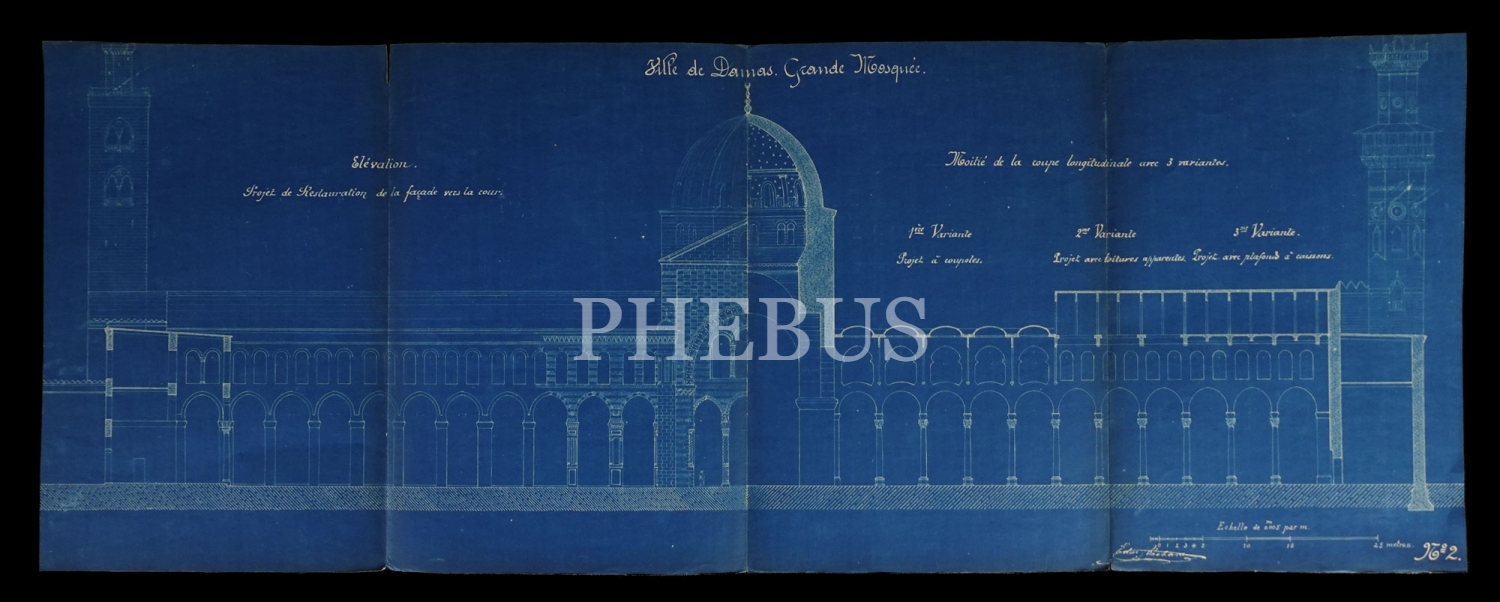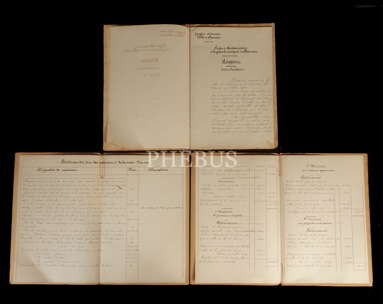 15 Eylül 1893 tarihinde yanan Şam Emeviyye Camii´nin restorasyonuna dair çok sayıda belge içeren 10 adet Fransızca rapor ile raporların Osmanlıca ve Arapça tercümeleri, 23x32 cm...
