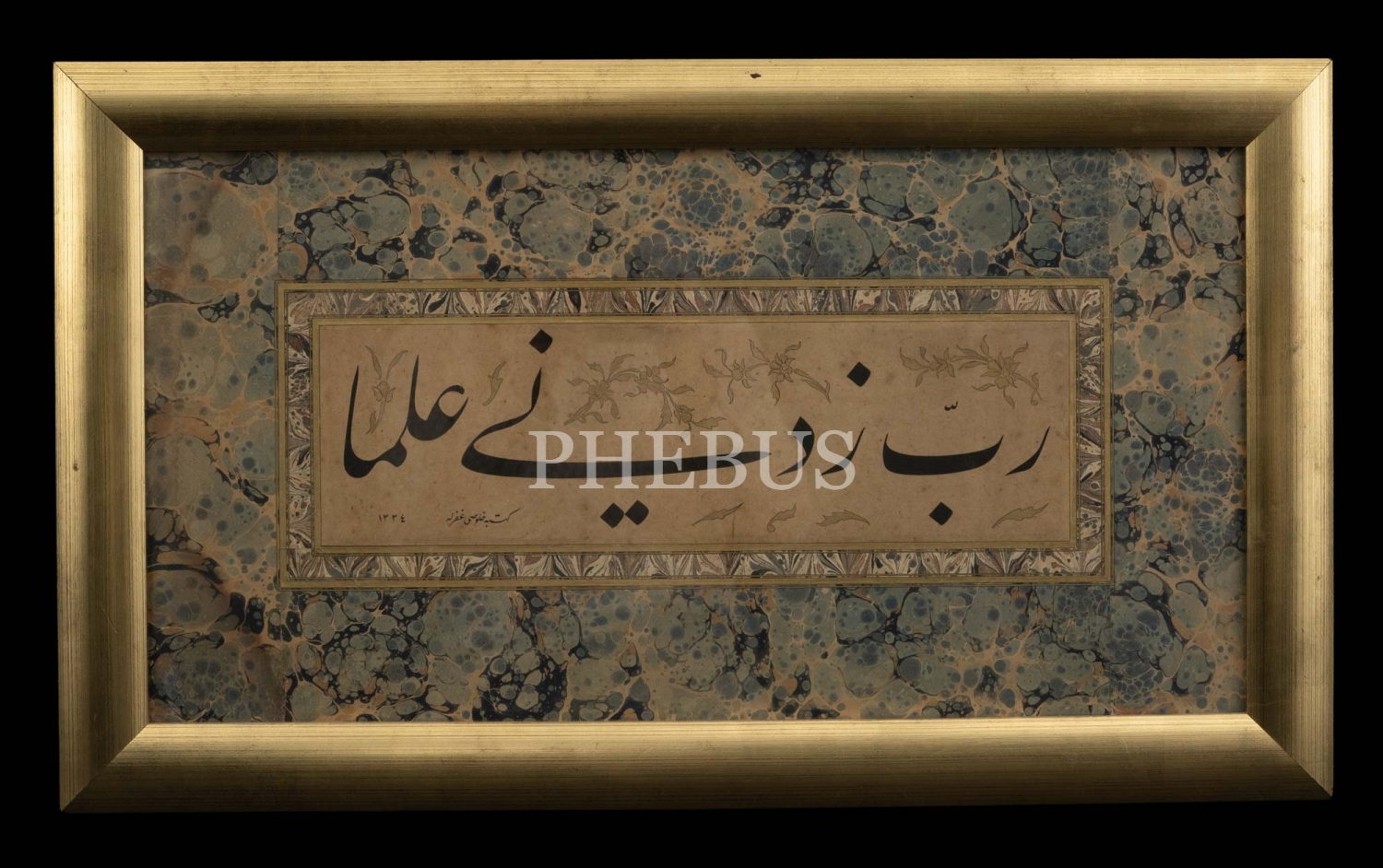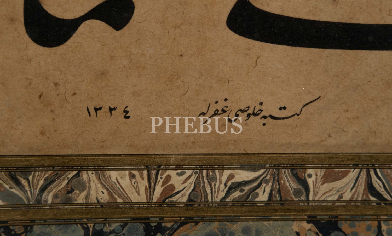 Celi ta´lik levha, ebru paspartulu, 1334, çerçevesiyle birlikte 68x40 cm...