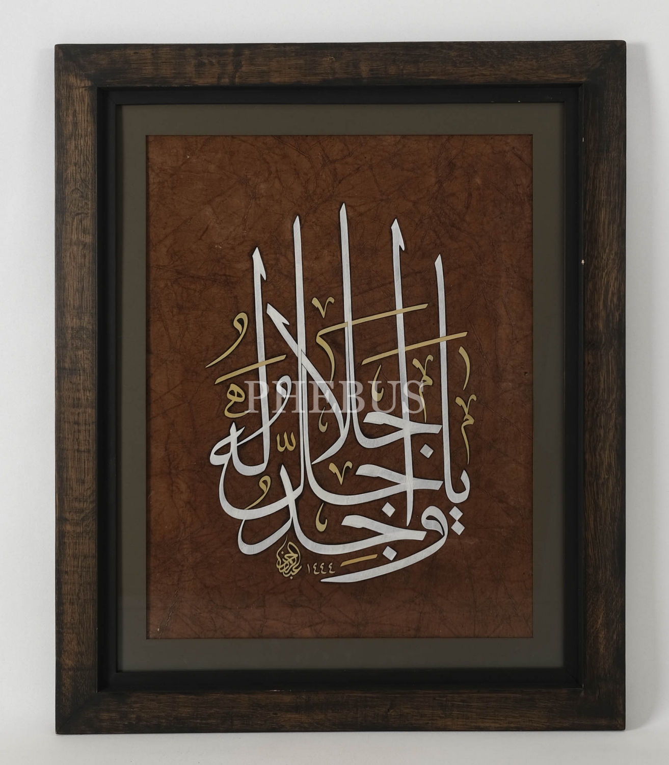 Celi sülüs Lafzatullah istifi, 1444, çerçevesiyle birlikte 60x72 cm...