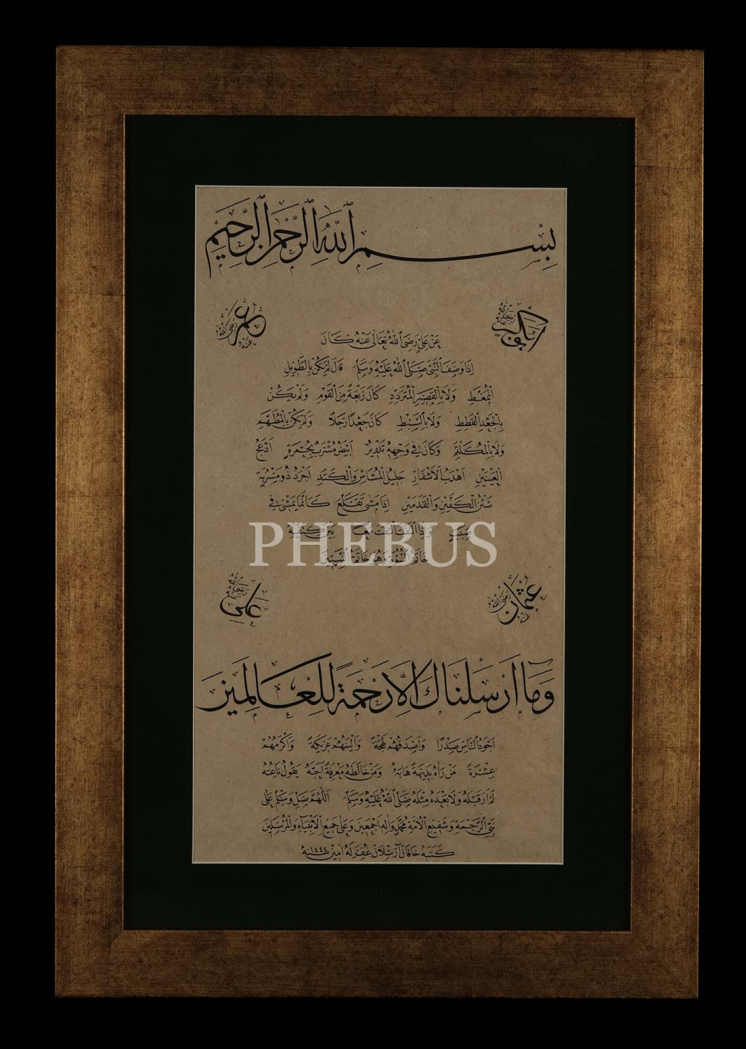 Sülüs ve Nesih Hilye-i Şerif, 1444, çerçevesiyle birlikte 43x63 cm...