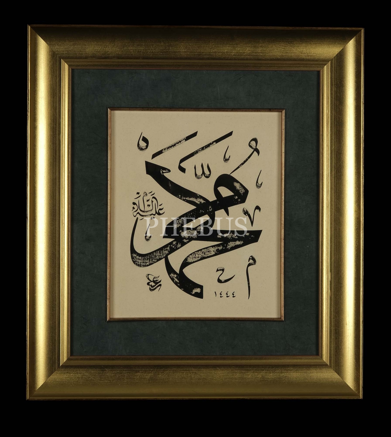 Celi sülüs İsm-i Nebi istifi, 1444, çerçevesiyle birlikte 42x47 cm...