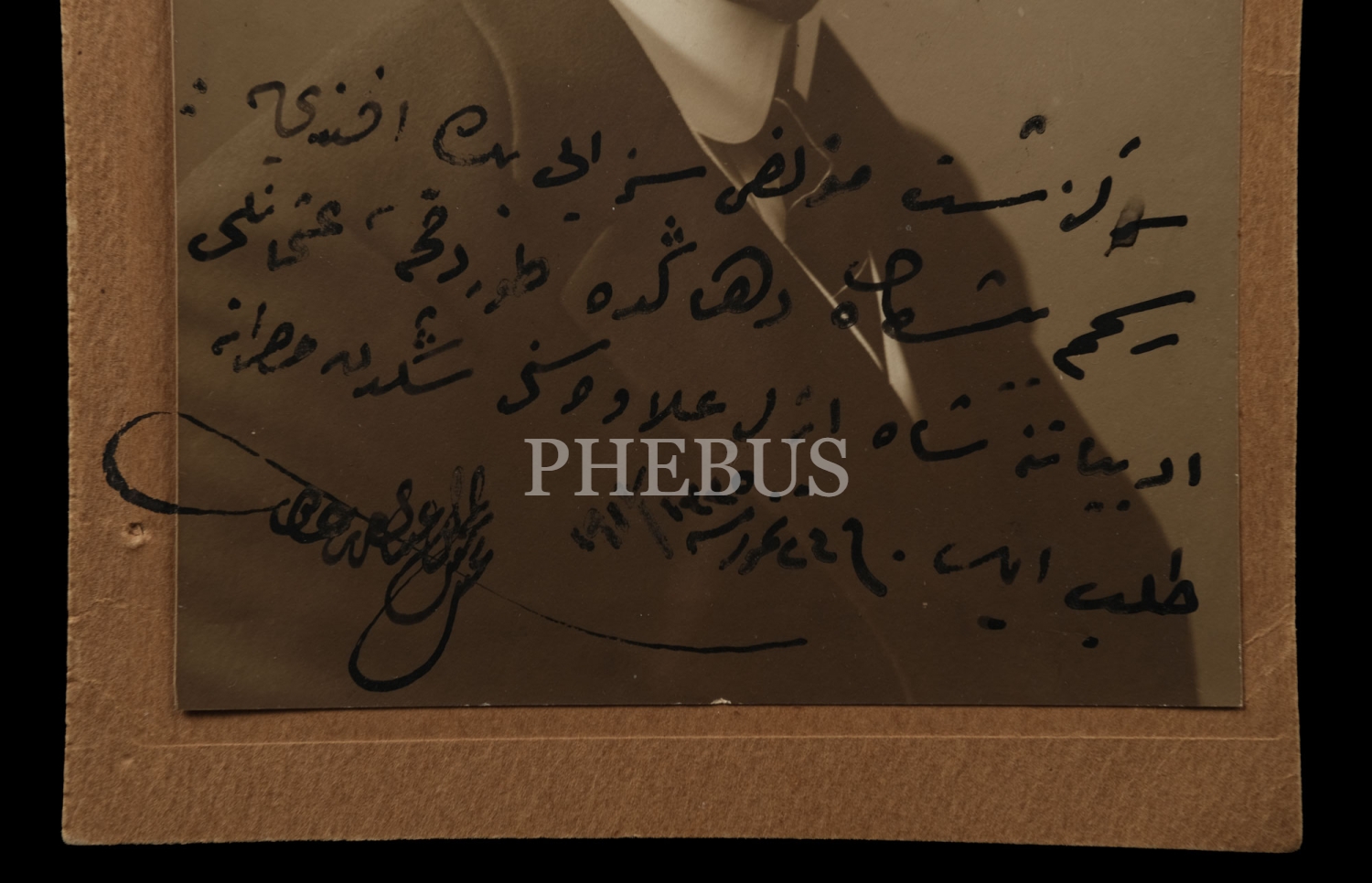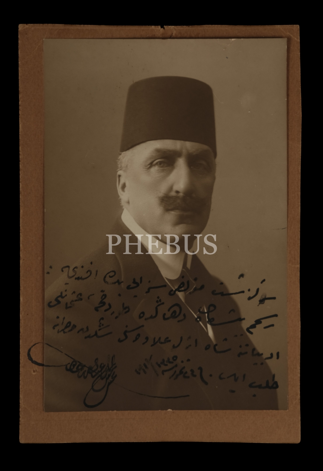 Osmanlı Devleti´nin son halifesi Abdülmecid Efendi´nin, ikinci kuşak Tanzimat edebiyatçılarımızdan Samipaşazade Sezai Bey´e ithaf edip imzaladığı fotoğrafı, 14x21 cm...