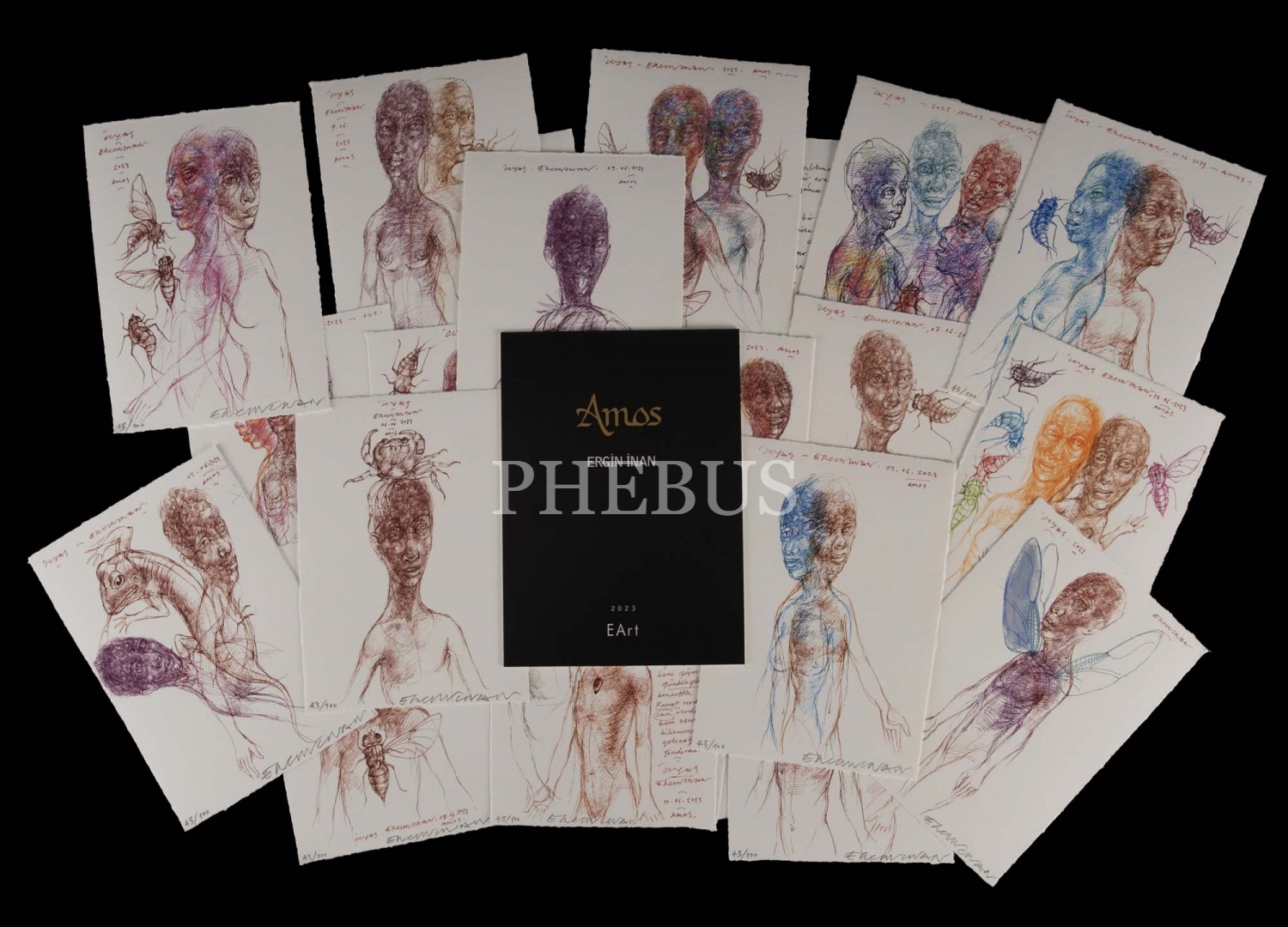 Ergin İnan´ın EArt Galeri´de düzenlediği "Amos" sergisi için yalnızca 100 adet hazırlanan özel koleksiyon serisi, 43/100, kutu 41x51x5 cm, yapraklar 21x30 cm...