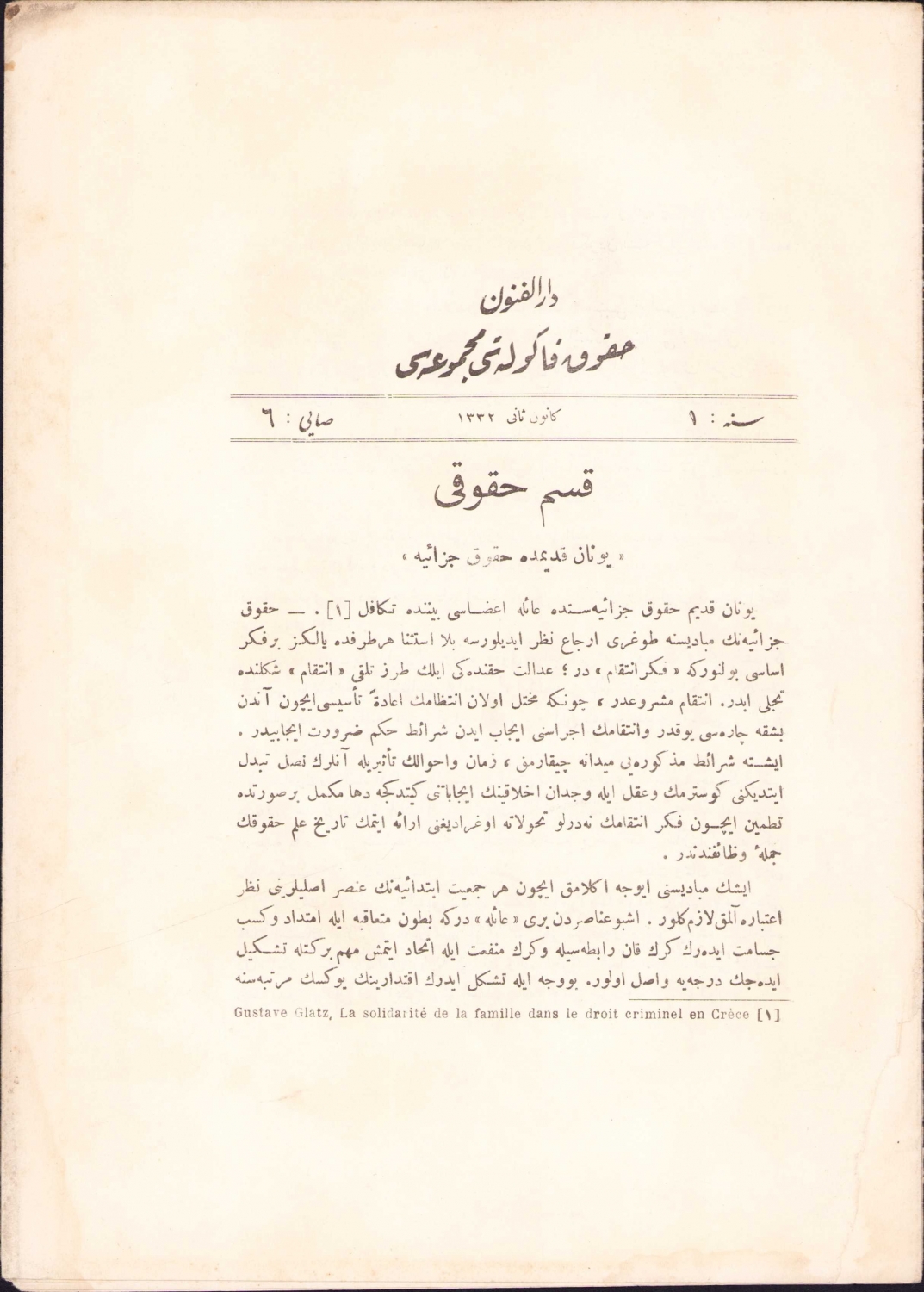 Osmanlıca Darülfünun Hukuk Fakülyesi Mecmuası, 1332, 10 sayfa, 20x28 cm