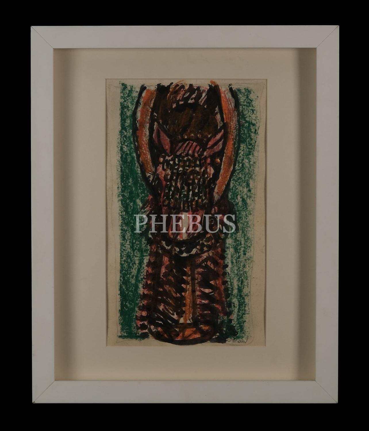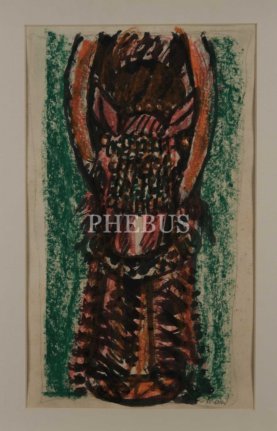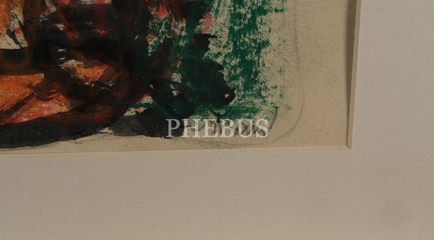 Orhan Peker´in (1927-1978) ıslak imzalı, kâğıt üzerine guaj boya "Torbalı At Başı" resmi, çerçevesiyle birlikte 40x49 cm...