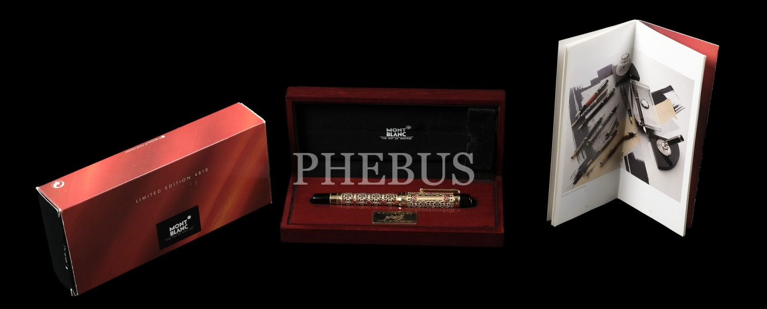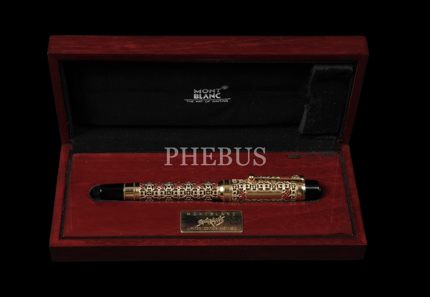 MONTBLANC 1996 Patron of Art "Semiramis", sınırlı üretim (4497/4810), 18K altın M (medium) uç, uluslararası hizmet sertifikasının yer aldığı orijinal ahşap kutusunda, kalem 14 cm, kutu 20x9x3,5 cm...