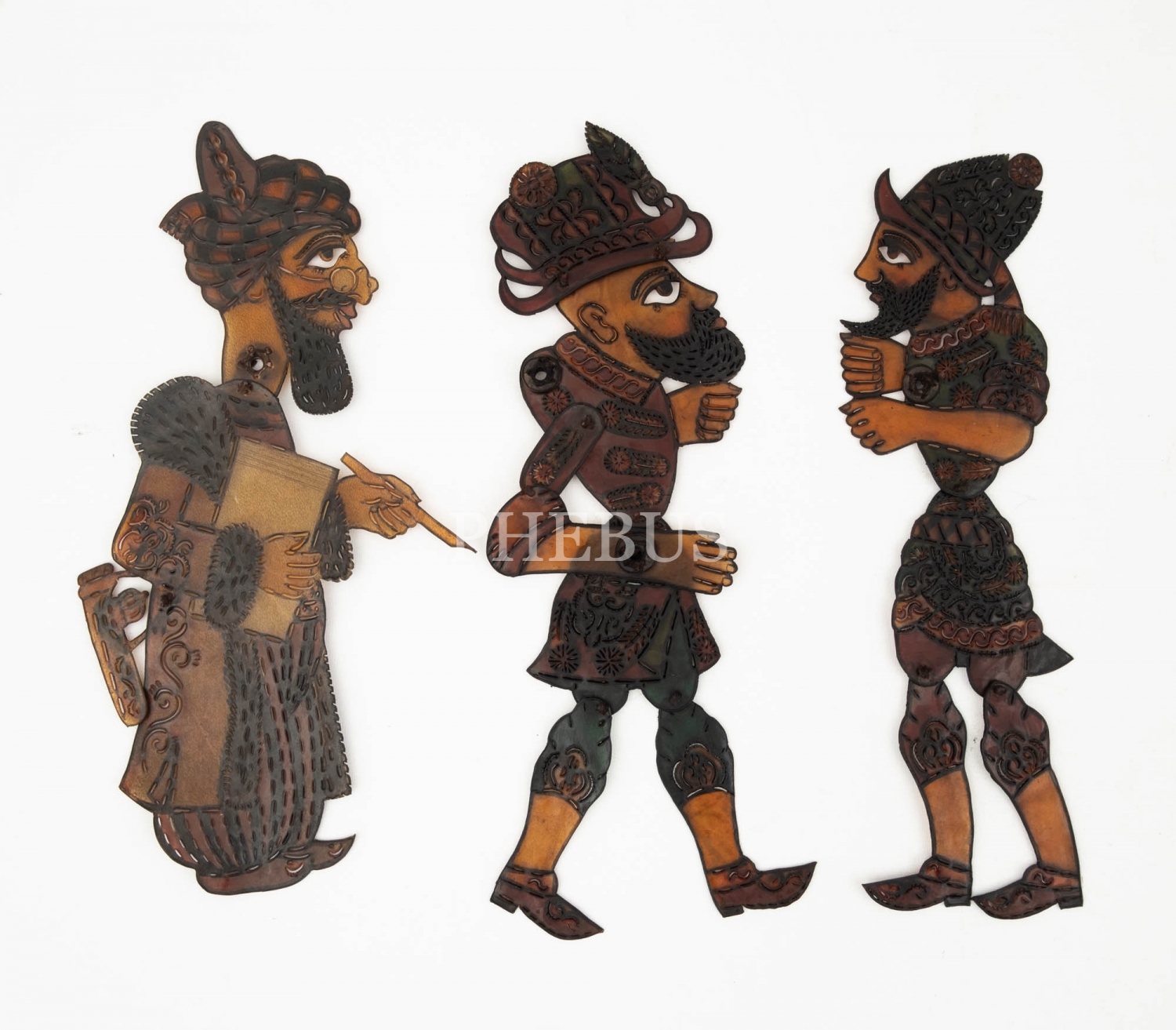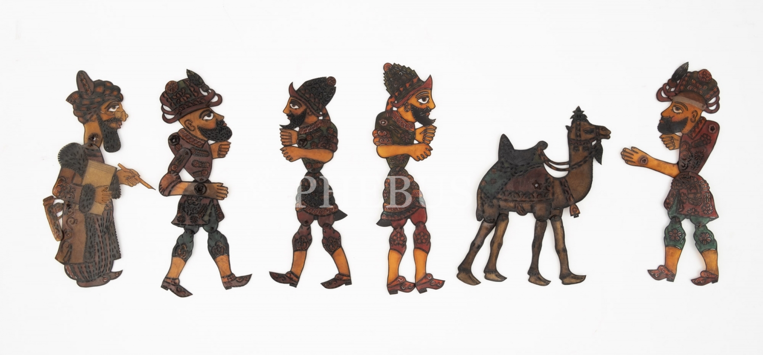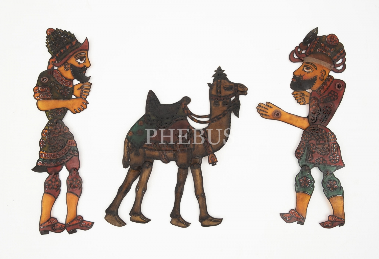 6 tasvirden oluşan lot içeriği, Karagöz (2 adet), Hacivat (2 adet), arzuhalci, deve.