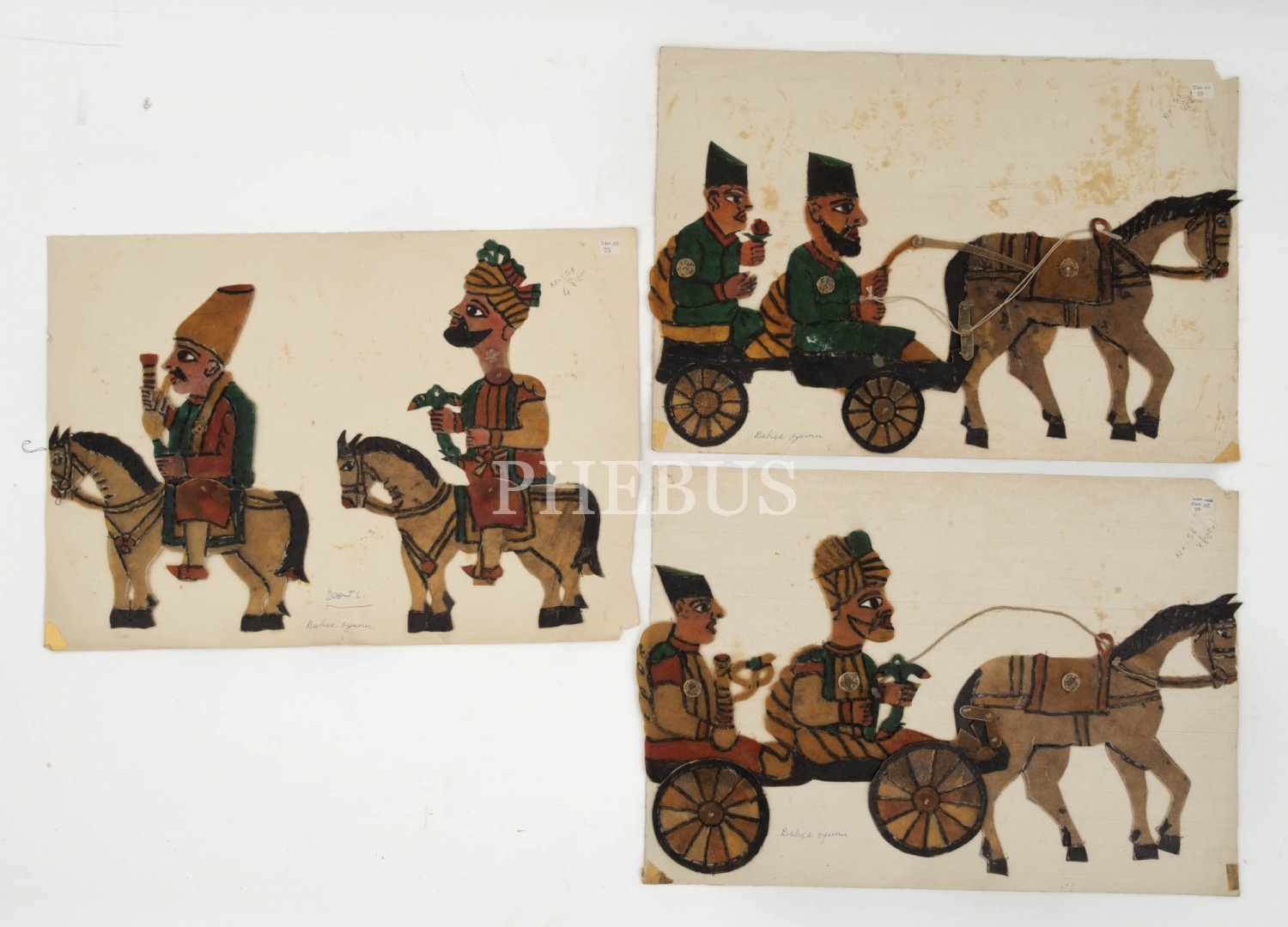 4 tasvirden oluşan lot içeriği, Acemler atlı arabada, Acem nöker, Acem ağa, Acem ağa ev Püşer atlı arabada.