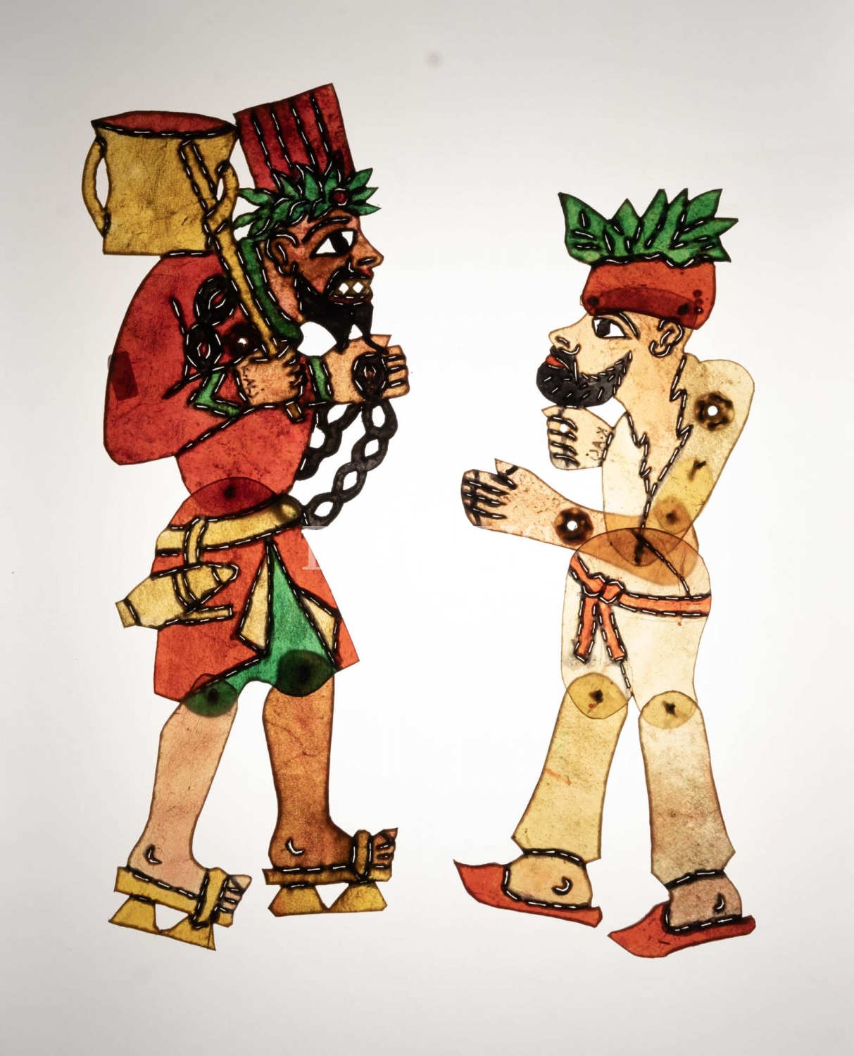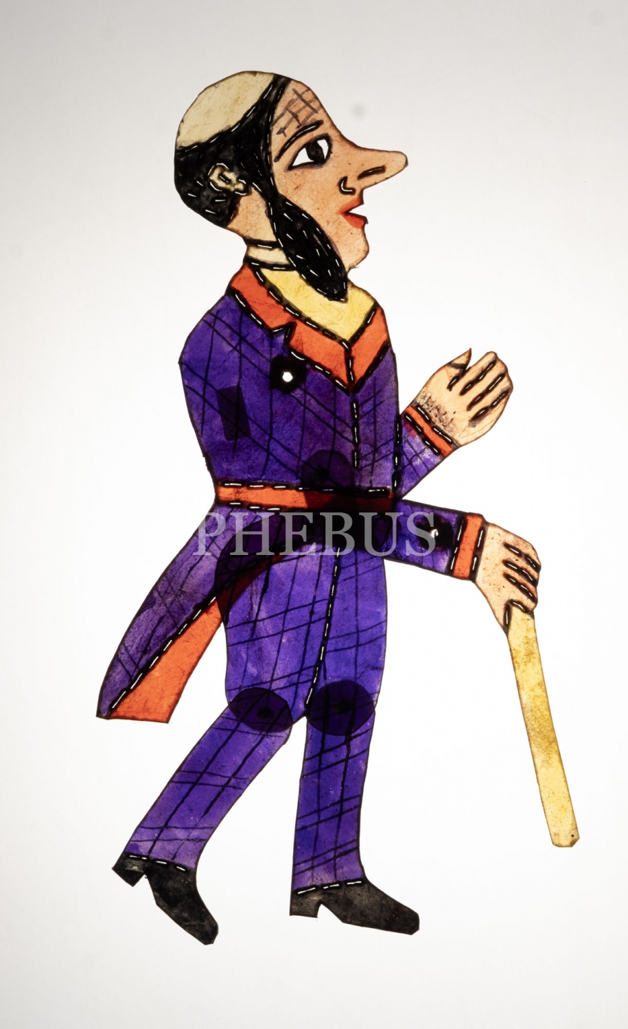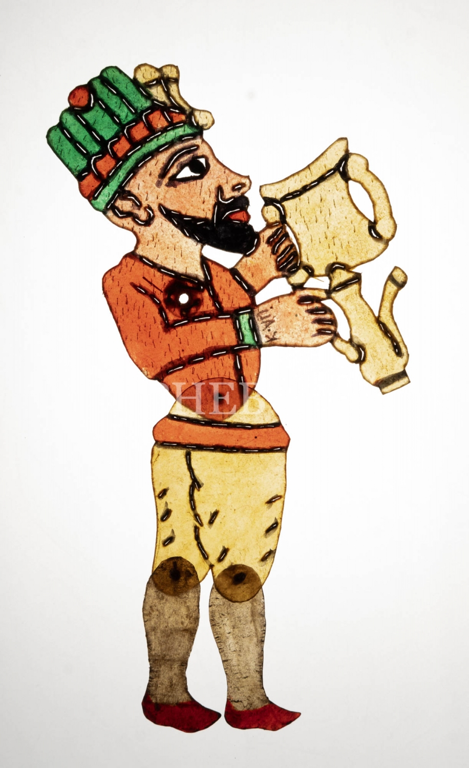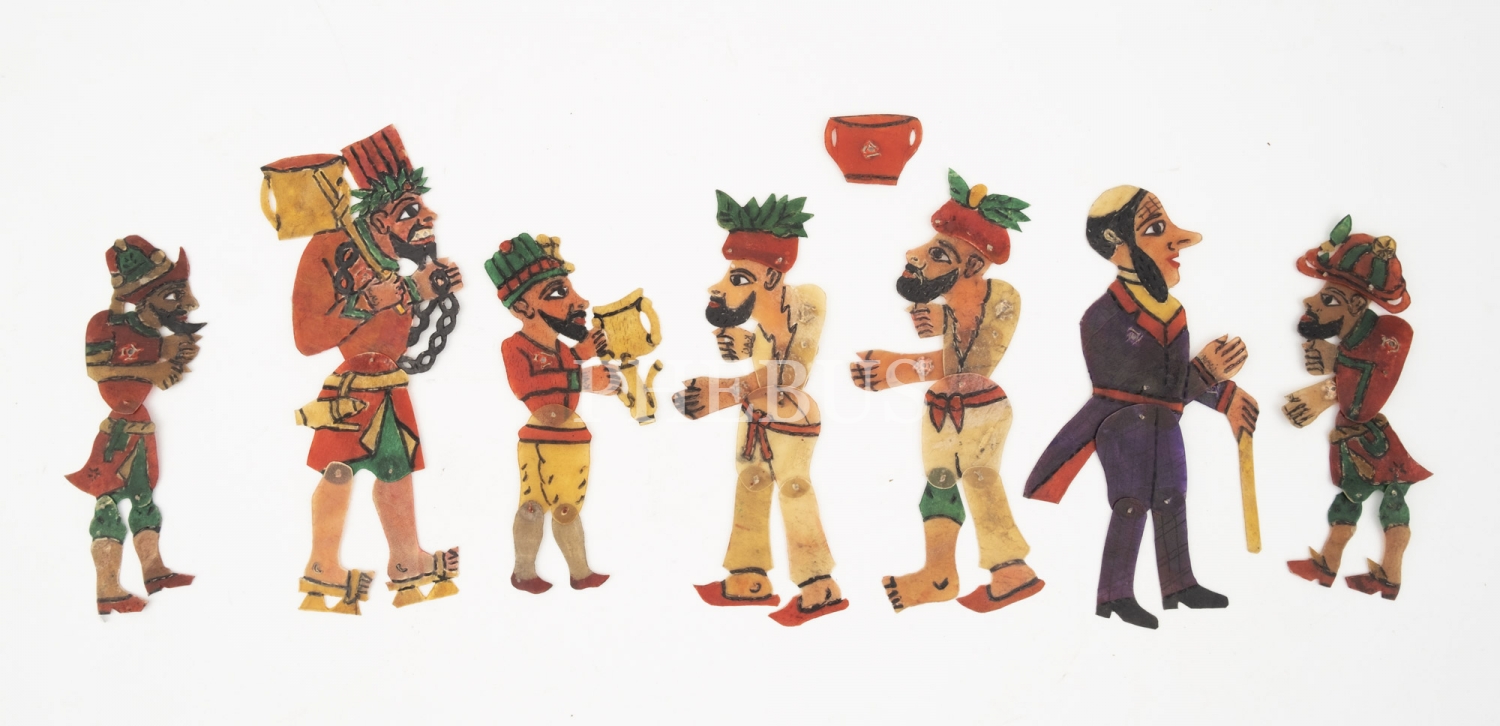 8 tasvirden oluşan lot içeriği, Karagöz, Hacivat, Deli (2 adet), Deli Karagöz (2 adet), Rum deli doktoru, oturak.
