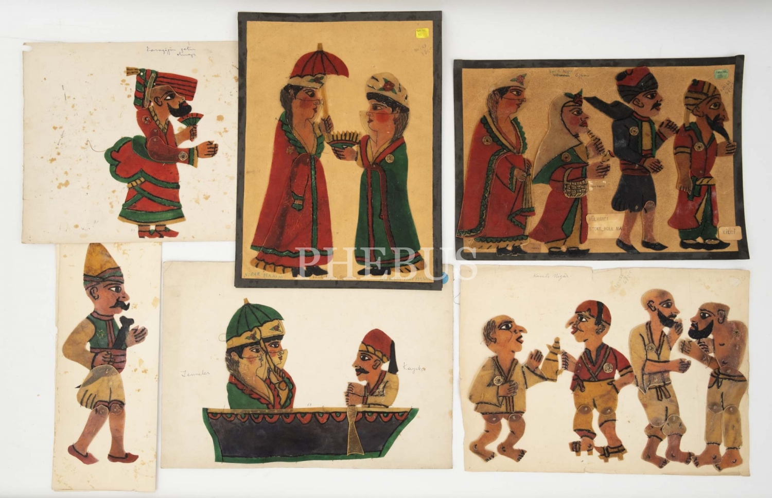 1950 ile 1960 arası Muhittin Sevilen (Hayali Küçük Ali) yapımı çeşitli Karagöz ve Hacivat oyunlarından tasvirler, muhtelif boyutlarda...