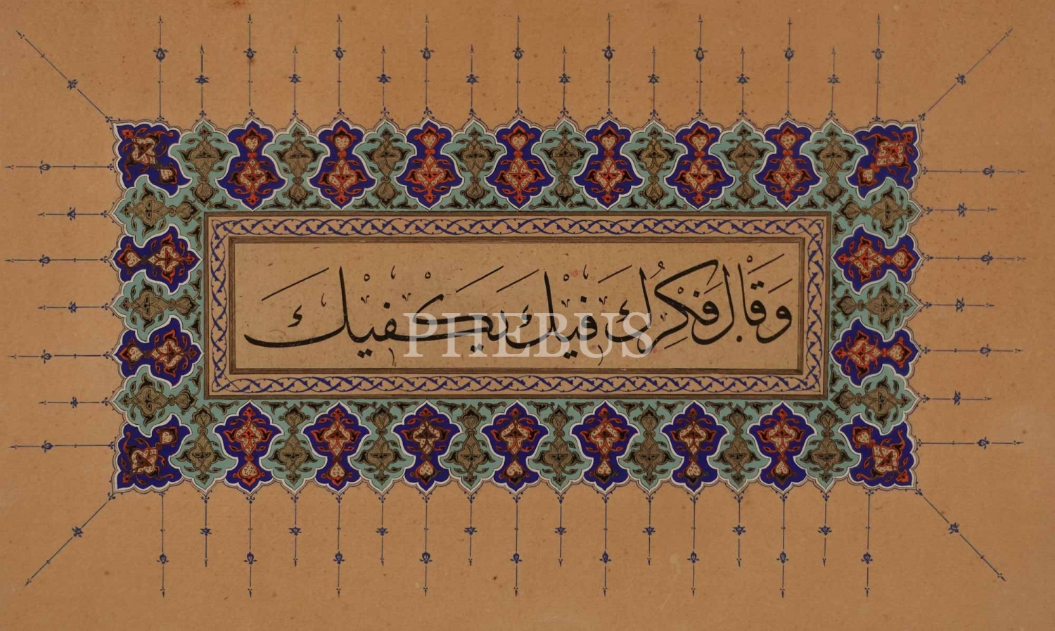 Hoca işi sülüs yazı, çerçevesiyle birlikte 42x28 cm...