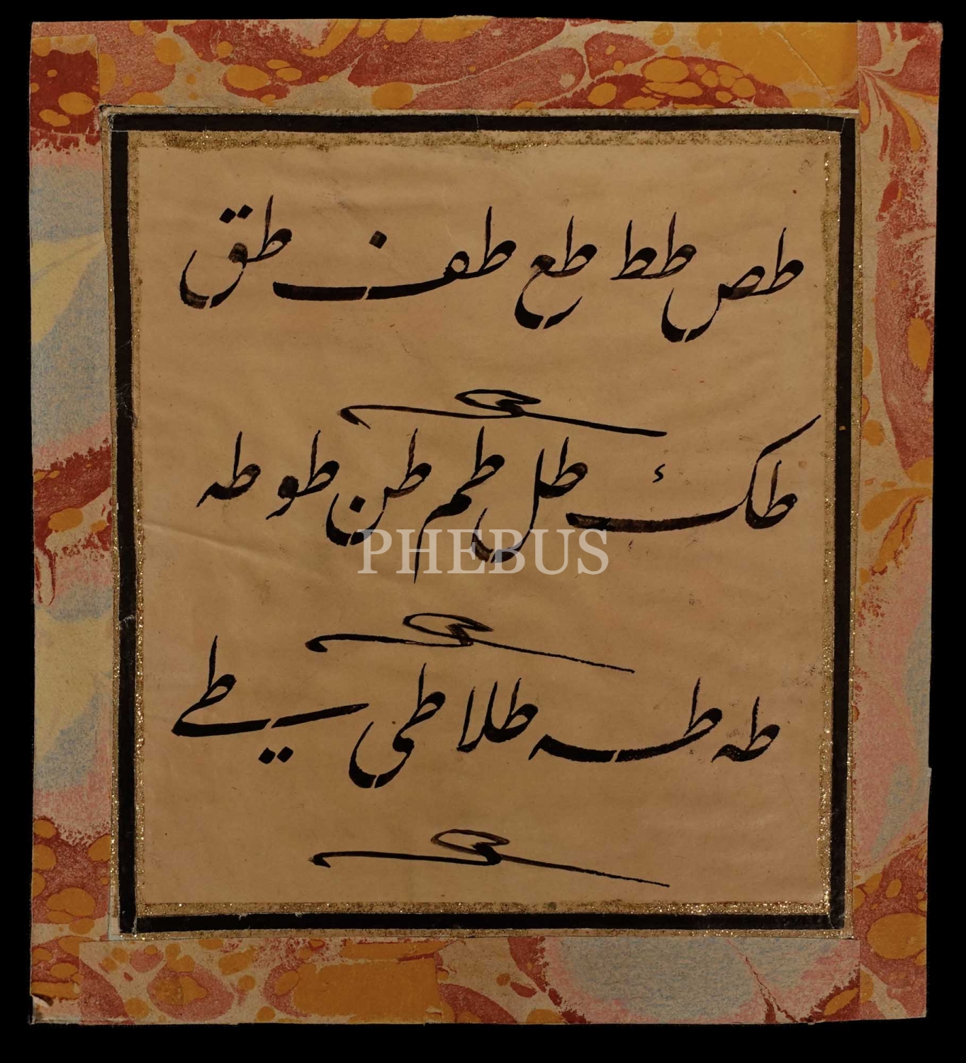 Hoca işi, ta´lik hurufat meşki, ebru pervazıyla birlikte 16x18 cm...
