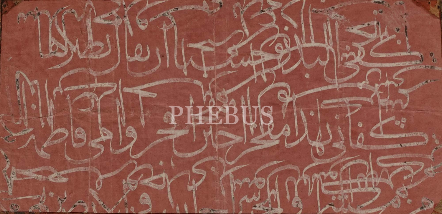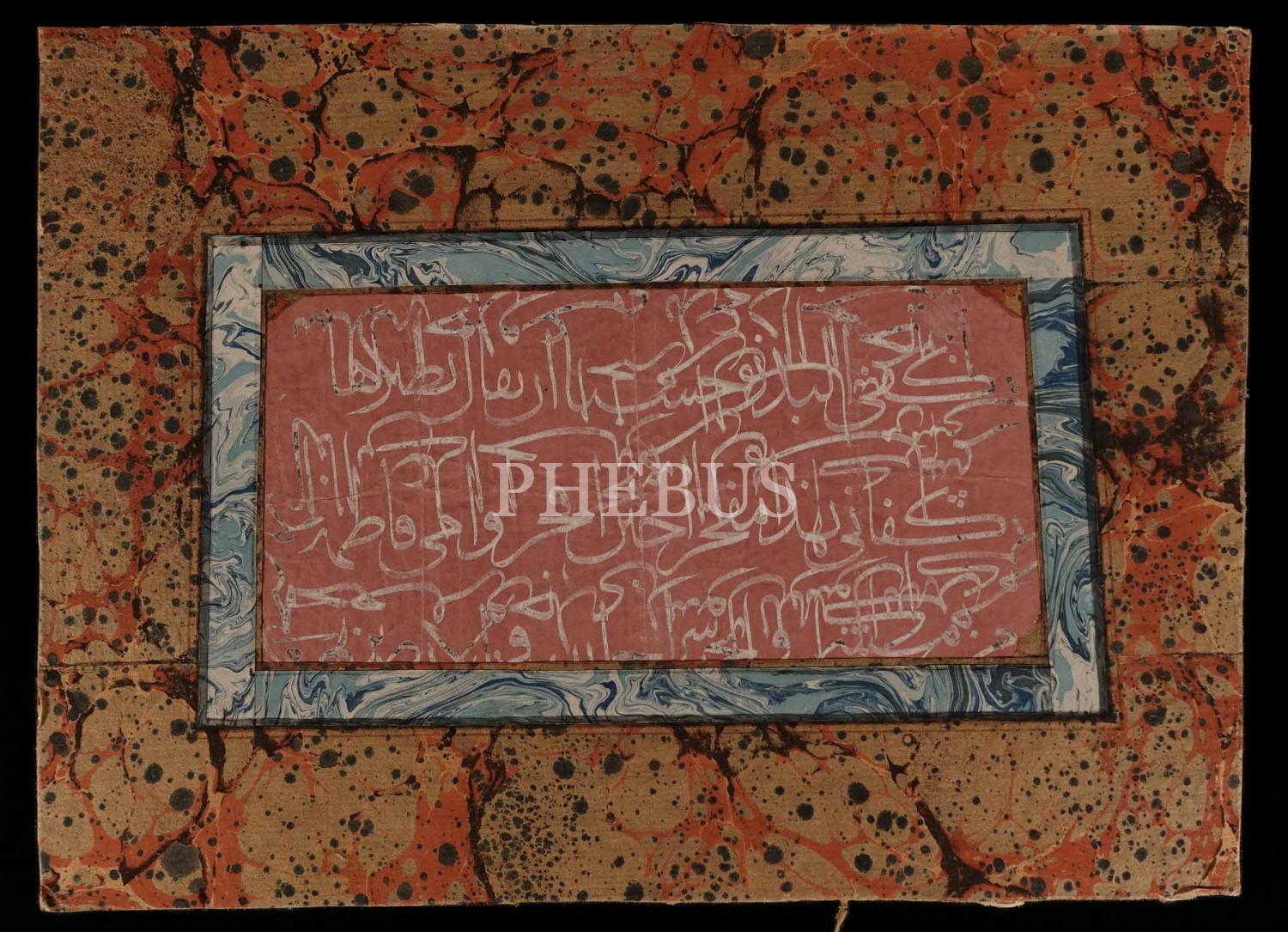 Erken dönem, hoca işi sülüs karalama çalışması, beyaz mürekkep, ebru pervazıyla birlikte 30x21 cm...