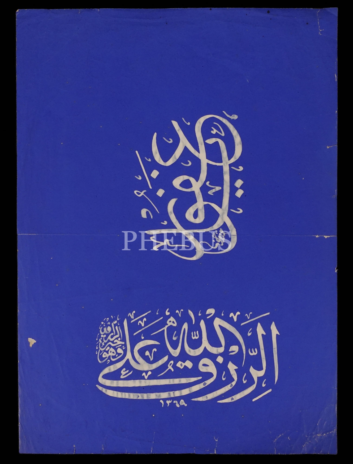 Hafız Hüsnü ketebeli sülüs yazı, mavi zemin üzerine beyaz mürekkep, 36x25 cm...