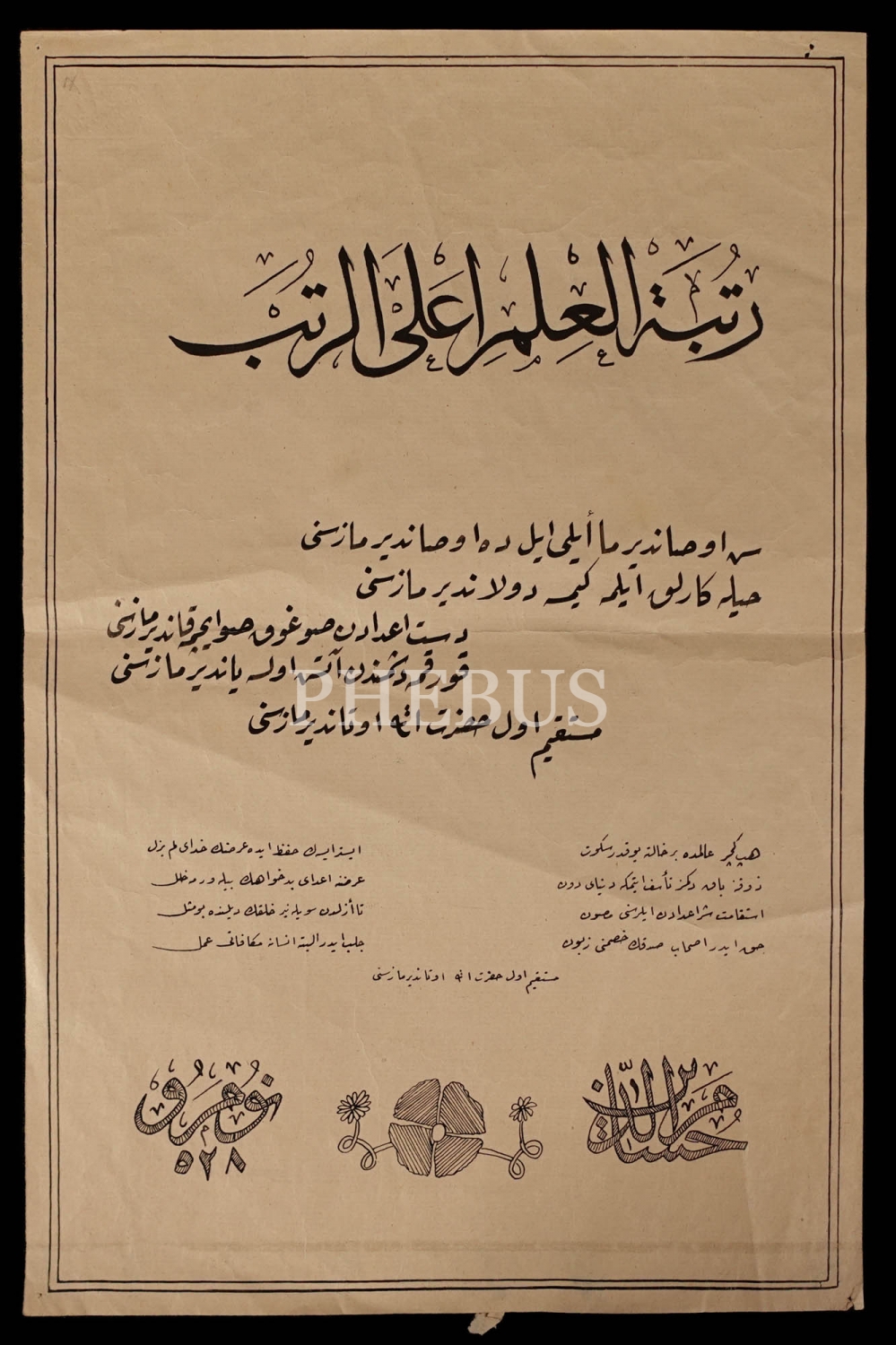 Sayfanın en üstünde, "rütbelerin en yücesi ilim rütbesidir" anlamına gelen "Rütbetü´l-ilmi a´lâ´r-rüteb" yazılıdr. Rik´a satırlarda, Sen usandırma eli elde usandırmaz seni, hilekarlık eyleme kimse dolandırmaz seni. Dest-i iadeden soğuk su içme kandırmaz seni, korkma düşmandan ateş olsa yandırmaz seni, müstakim ol Hazret-i Allah utandırmaz seni" yazılıdır.