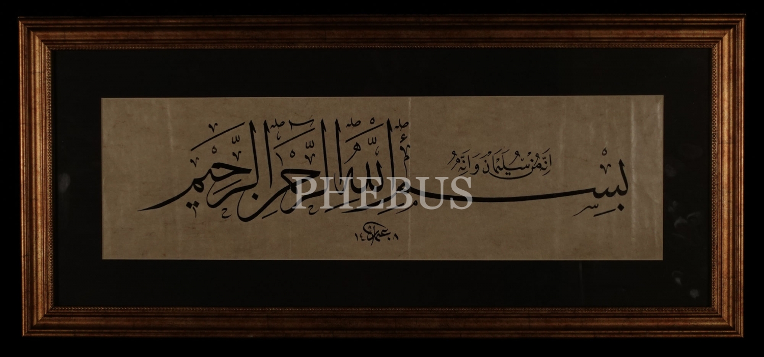 Osman ketebeli, celi sülüs Besmele-i Şerife, 1408, çerçevesiyle birlikte 72x33 cm...