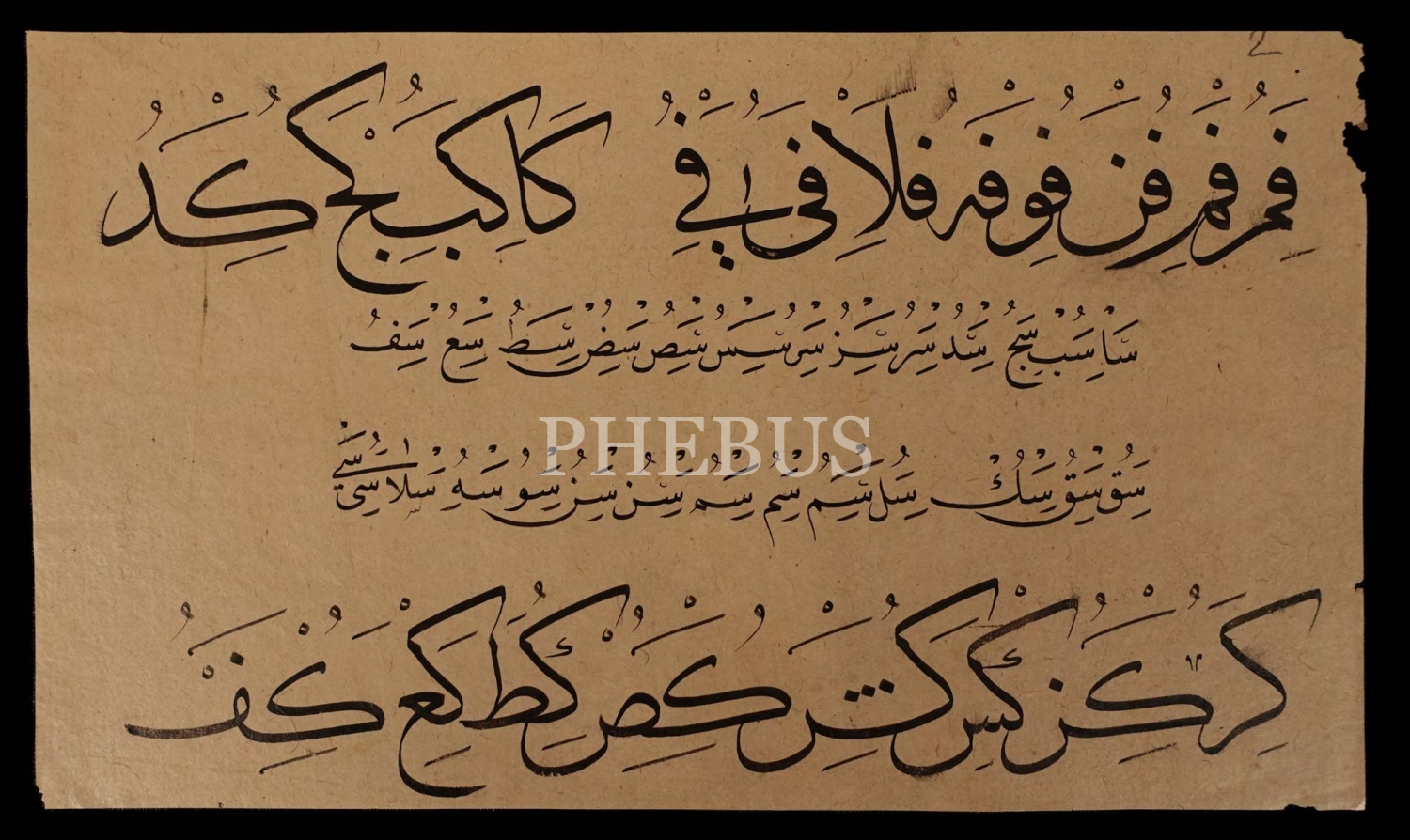 Hoca işi, sülüs-nesih hurufat meşki, 21x13 cm...