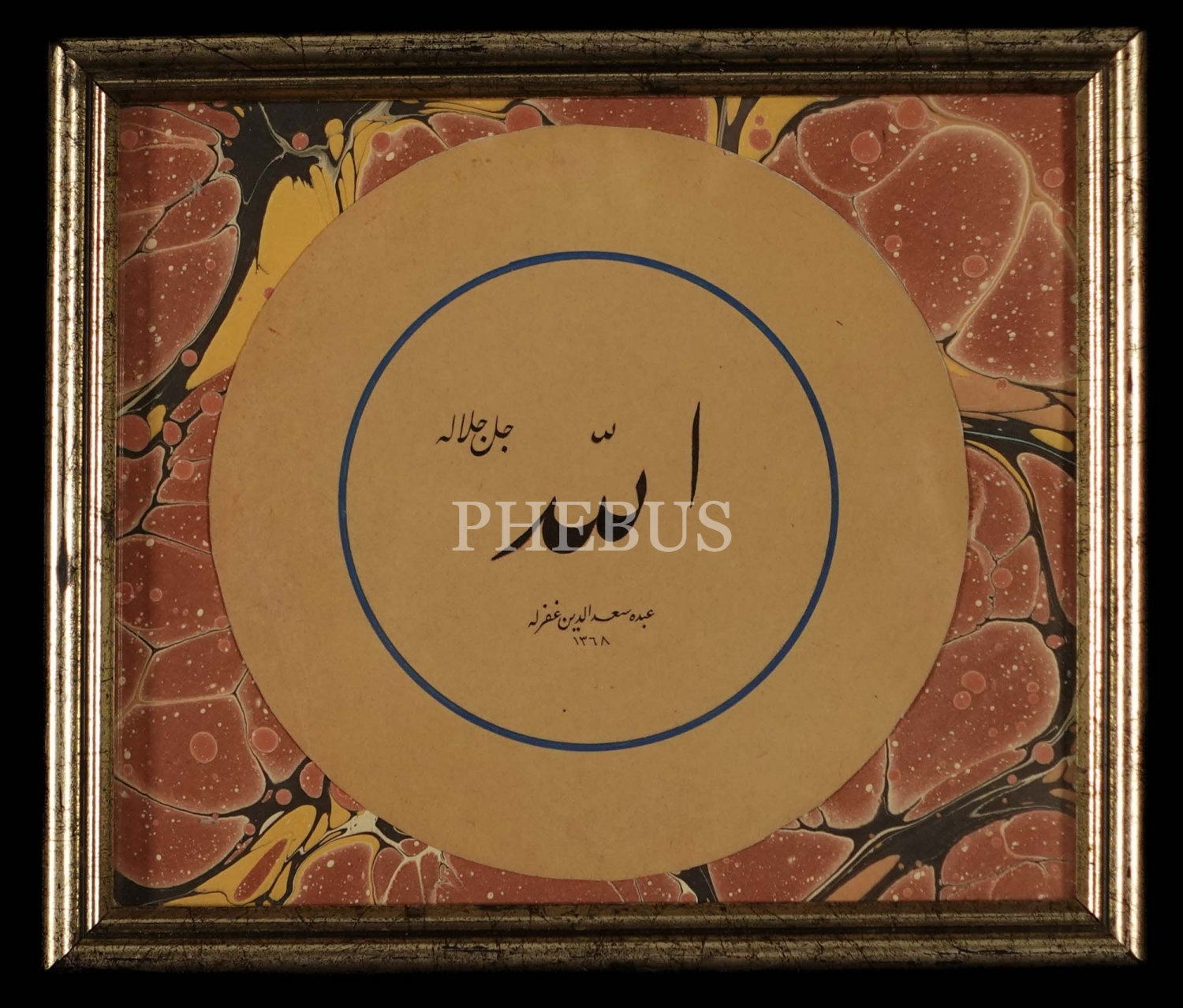 Sadettin Nimeti ketebeli, ta´lik Lafzatullah, çerçevesiyle birlikte, 1368, 23x20 cm...
