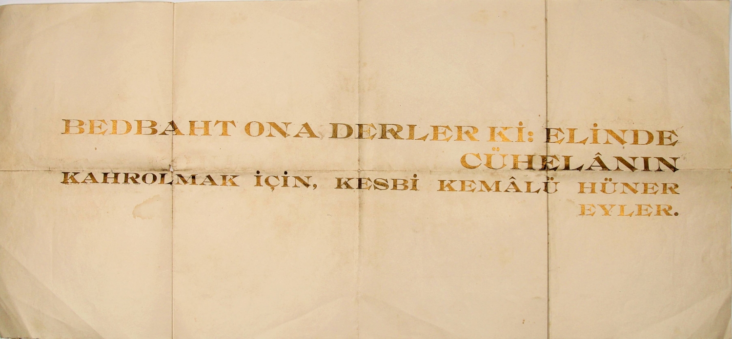 Bedabaht Ona Derler ki: Elinde Cühelanın Kahrolmak İçin, Kesbi Kemalü Hüner Eyler, 60x28 cm
