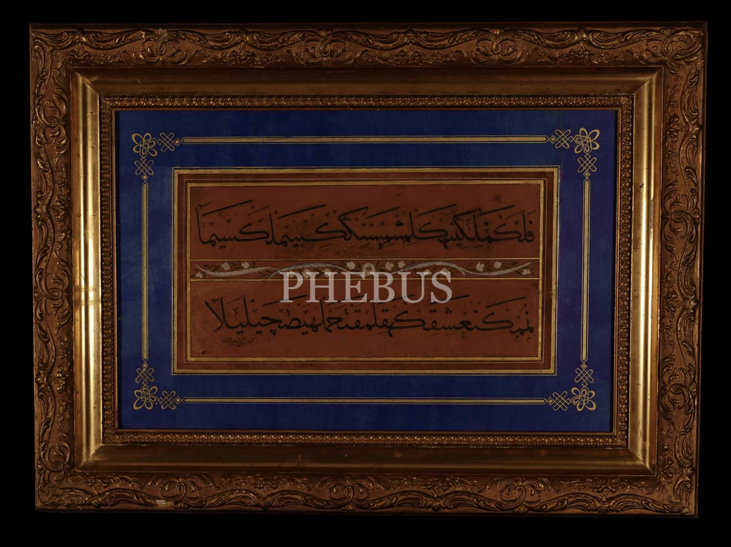 Hüseyin Keşfi ketebeli, sülüs müselsel yazı, 1296, çerçevesiyle birlikte 68x49 cm...