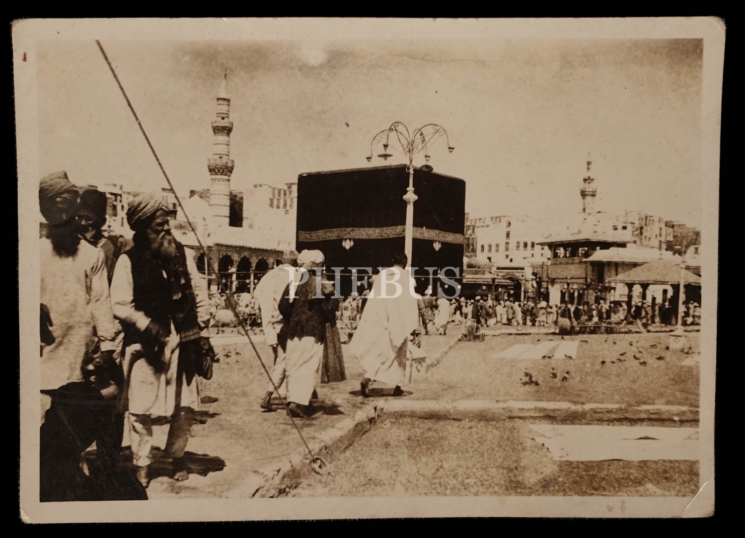 Osmanlı döneminden, fesli Osmanlı hacıların da göründüğü Kabe-i Muazzama fotoğrafı, 9x6 cm...
