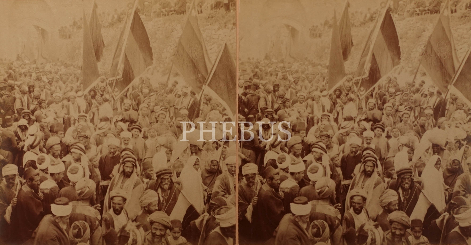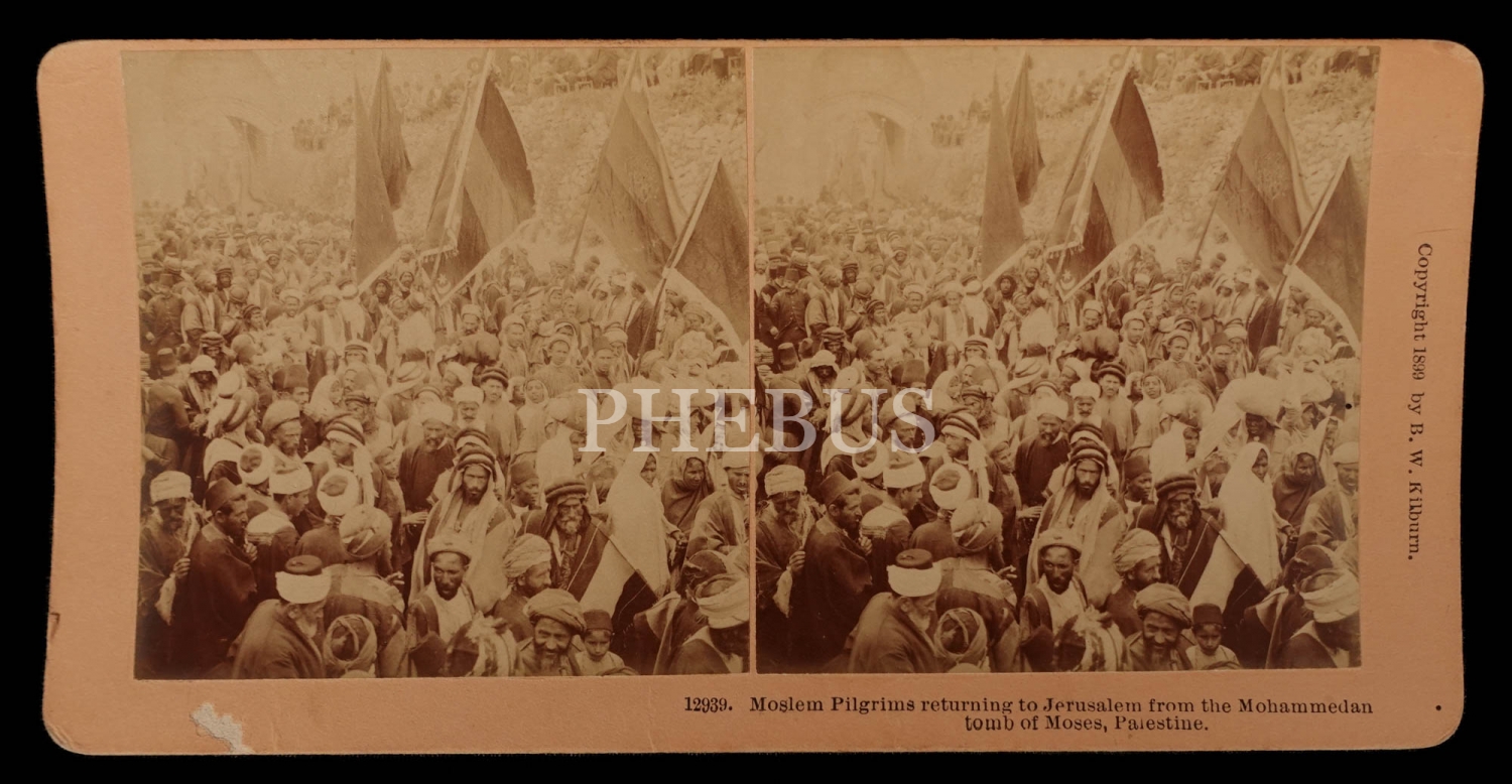 Hac görevini ifa eden hacıların Kudüs´e dönüşlerinin göründüğü streoview fotoğraf, 1899, B.W. Kilburn, 18x9 cm...
