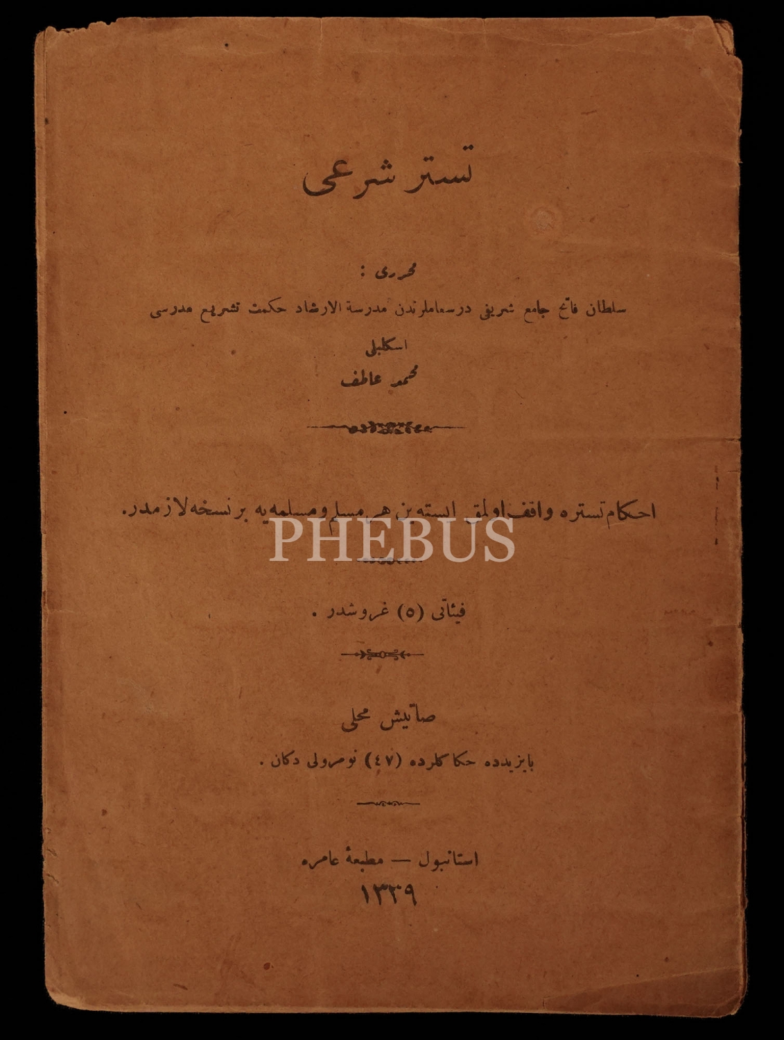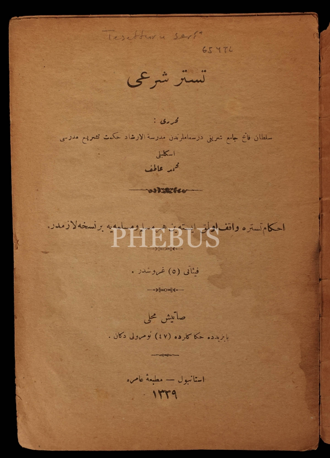 TESSETTÜR-İ ŞER´İ, İskilipli Mehmed Atıf, 1339, Matbaa-i Amire, 16 sayfa, 14x20 cm...