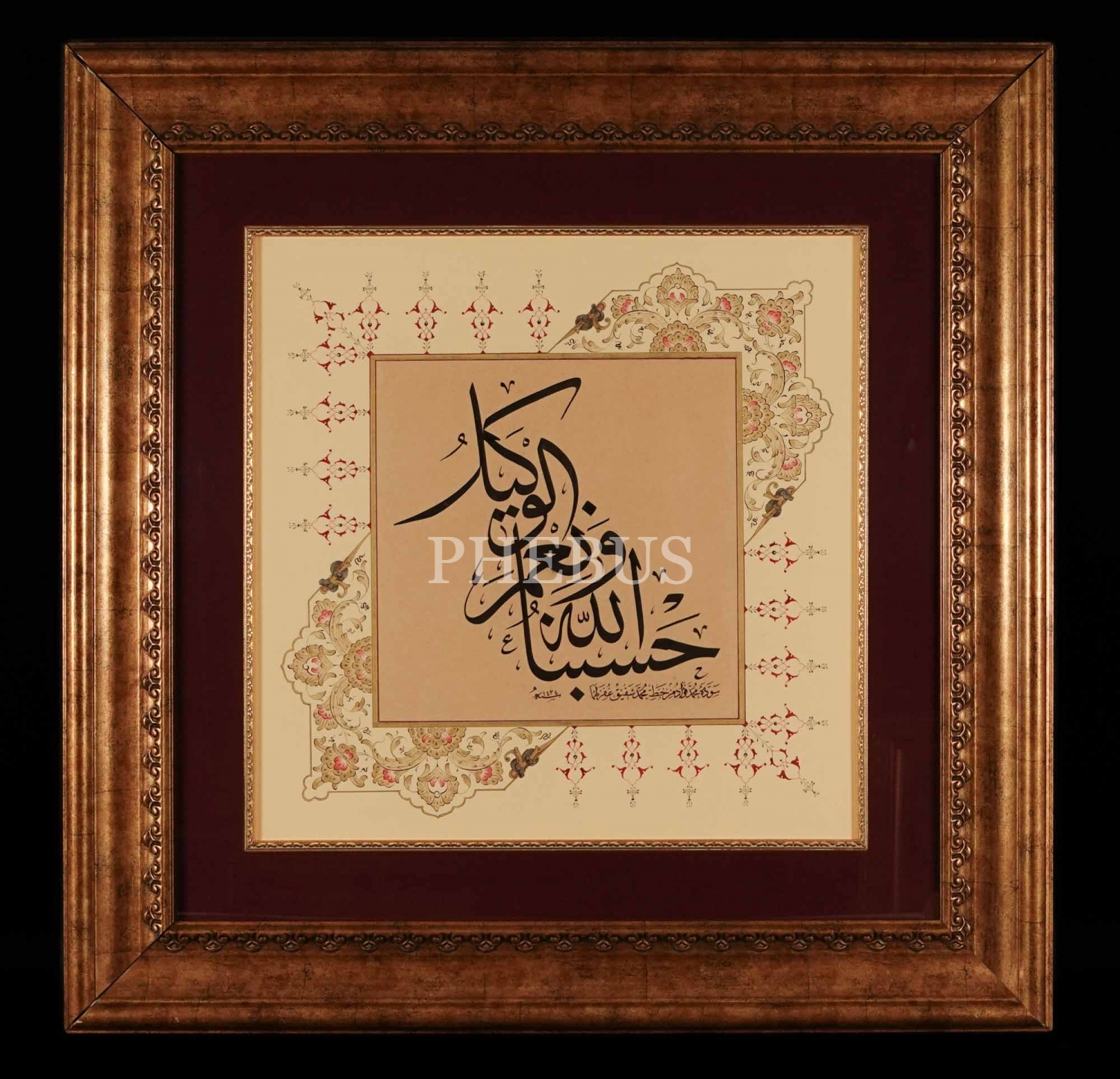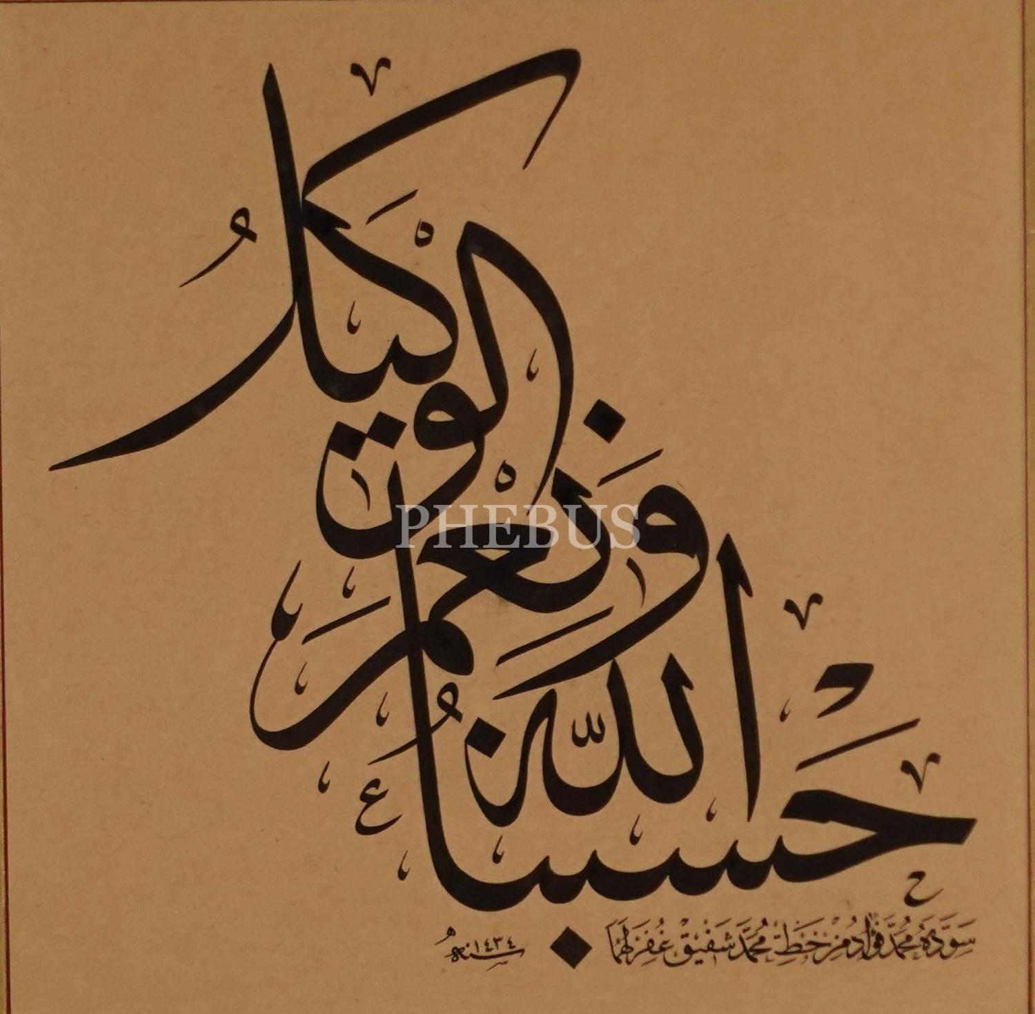 Fuat Başar´ın, Kazasker Mustafa İzzet Efendi´den icazet alan Osmanlı´nın meşhur hattatlarından Mehmed Şefik Efendi´nin hattından resmettiği yazıdır. “Allah bize yeter, O ne güzel vekildir” "Hasbünallahu ve Ni’mel Vekîl"