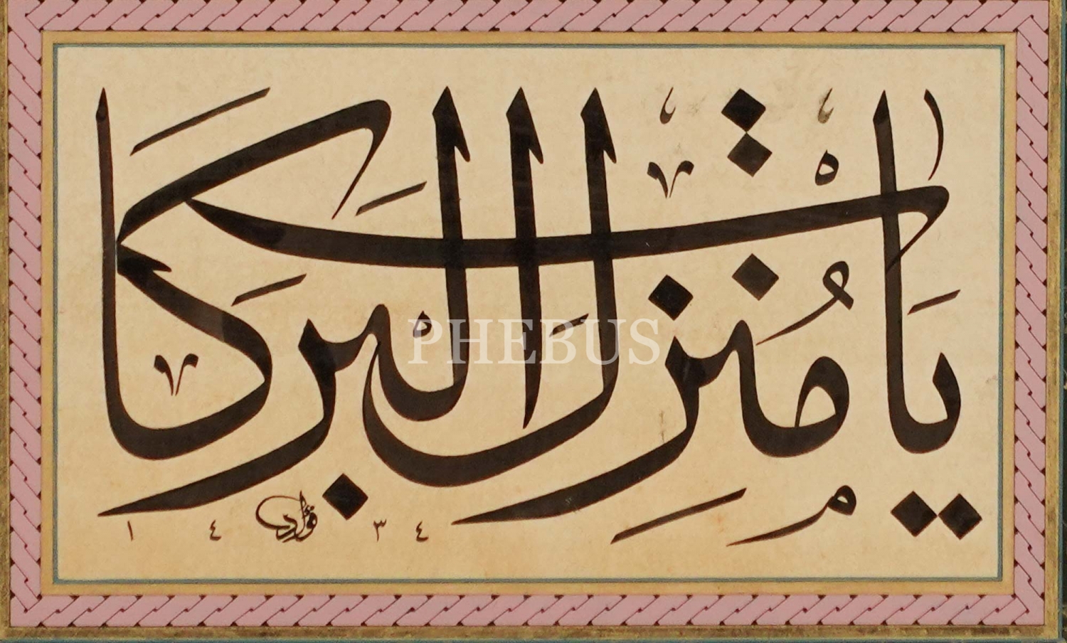 Fuat Başar ketebeli, celî sülüs levha, 1434, çerçevesiyle birlikte 78x67 cm...
