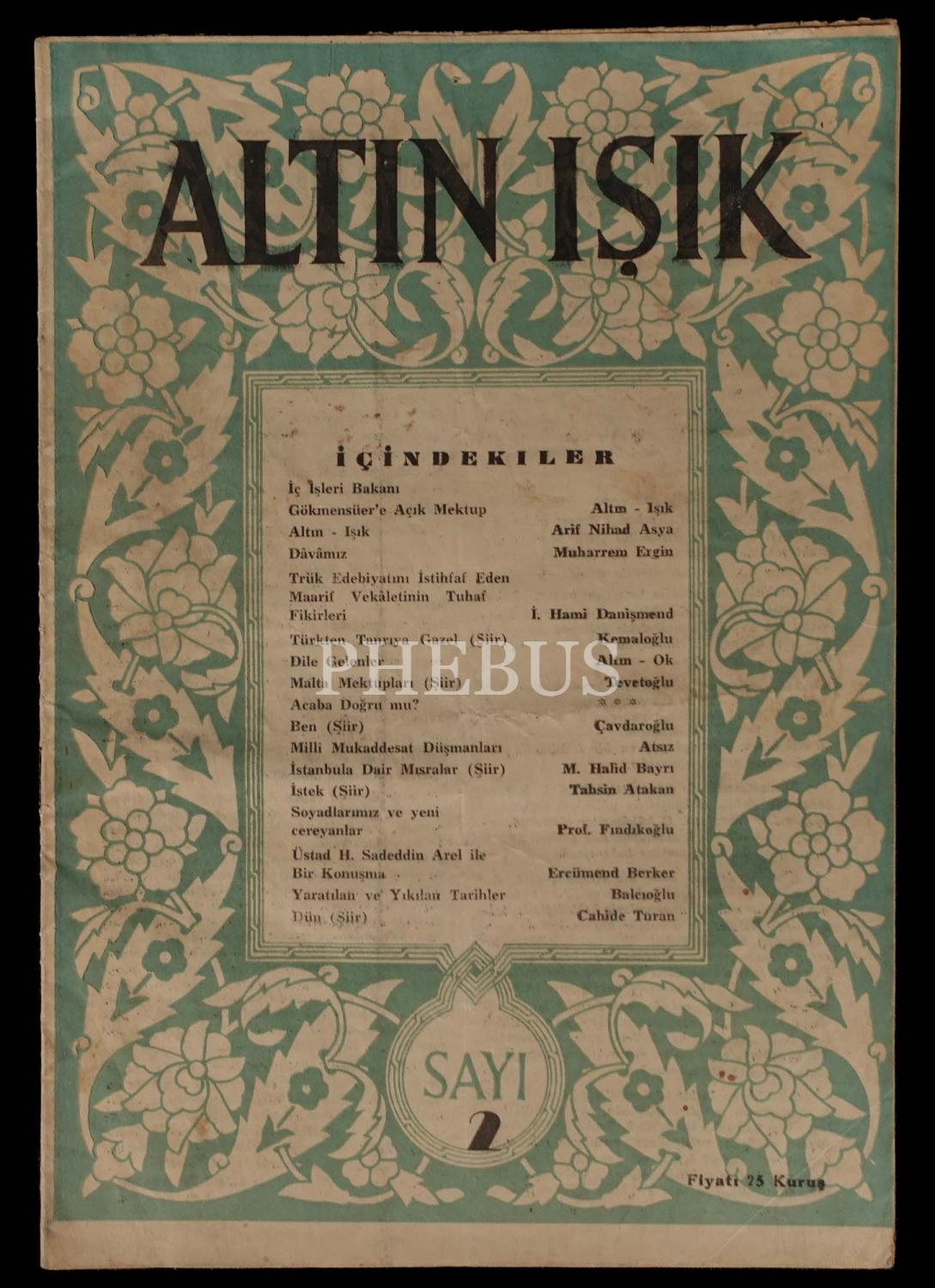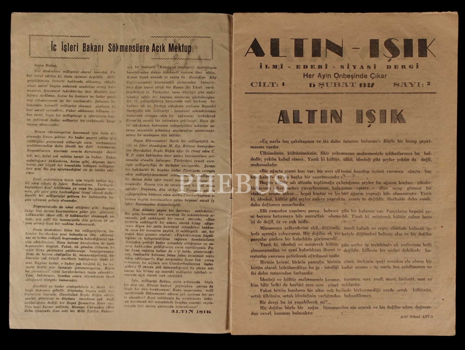 ALTIN IŞIK İlmî-Edebî-Siyasî Dergi´nin 15 Şubat 1947 tarihli 2. sayısı, 20x29 cm...
