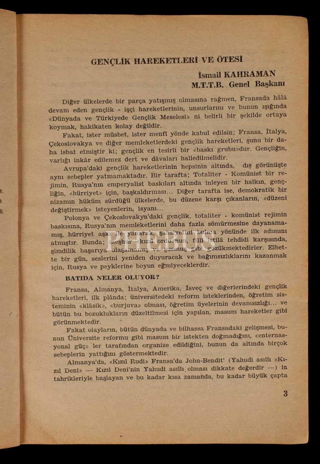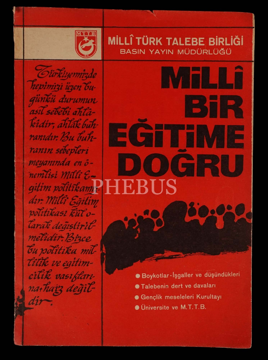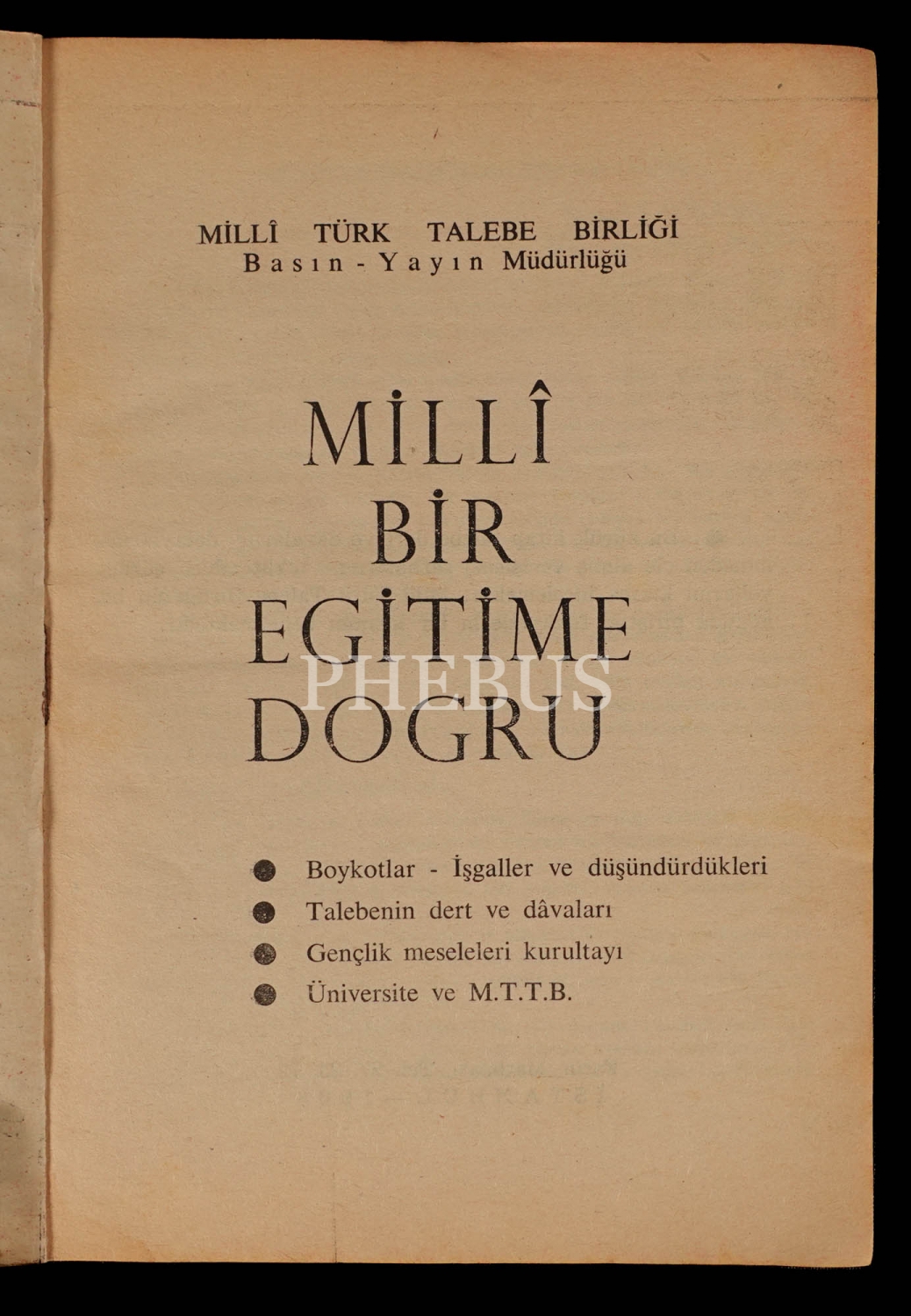 MİLLÎ BİR EĞİTİME DOĞRU, 1968, MTTB Yayınları-Fatih Matbaası, 48 sayfa, 14x20 cm...