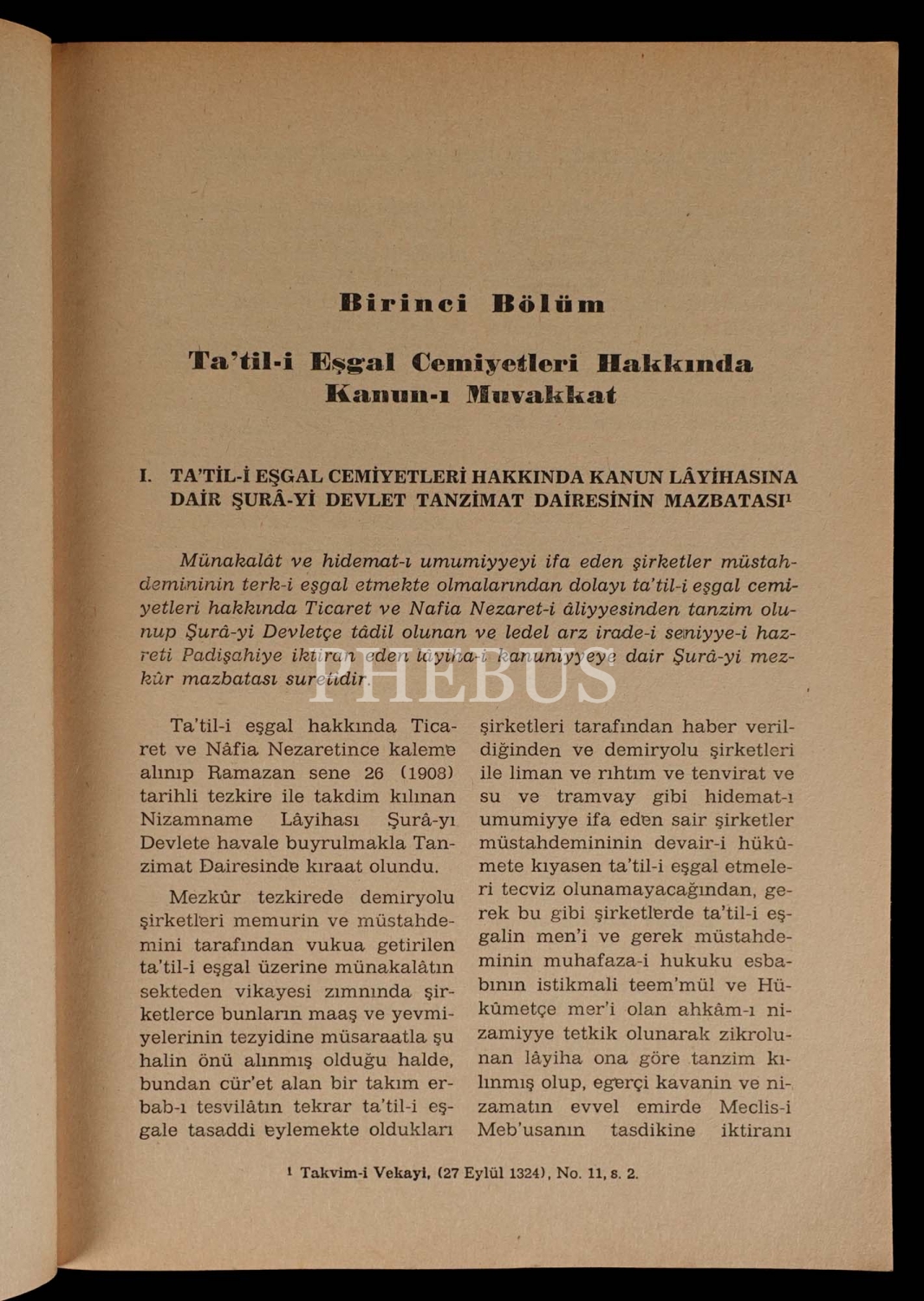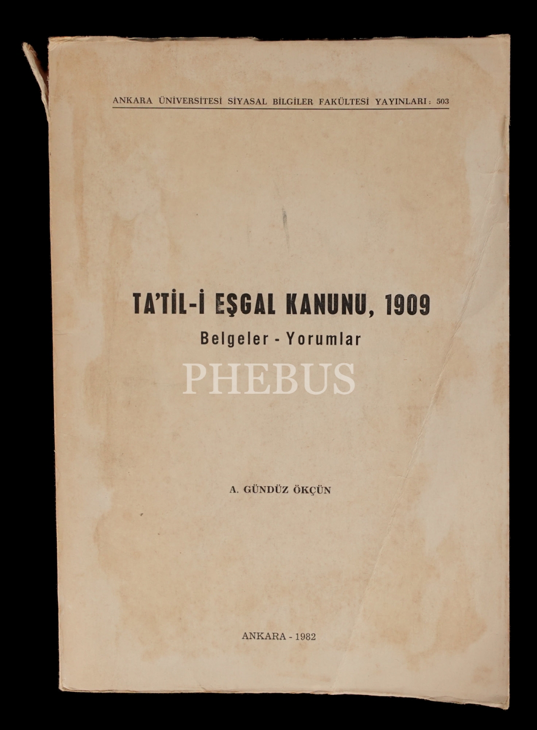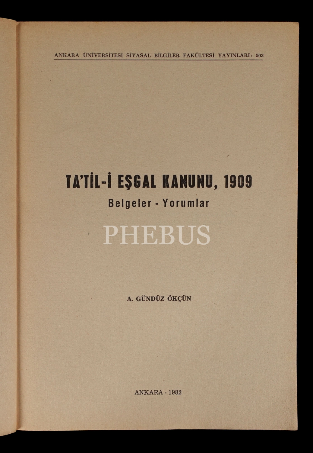 TA´TİL-İ EŞGAL KANUNU, 1909 Belgeler-Yorumlar, A. Gündüz Ökçün, 1982, Ankara Üniversitesi Siyasal Bilgiler Fakültesi Yayınları, 164 sayfa, 17x24 cm...