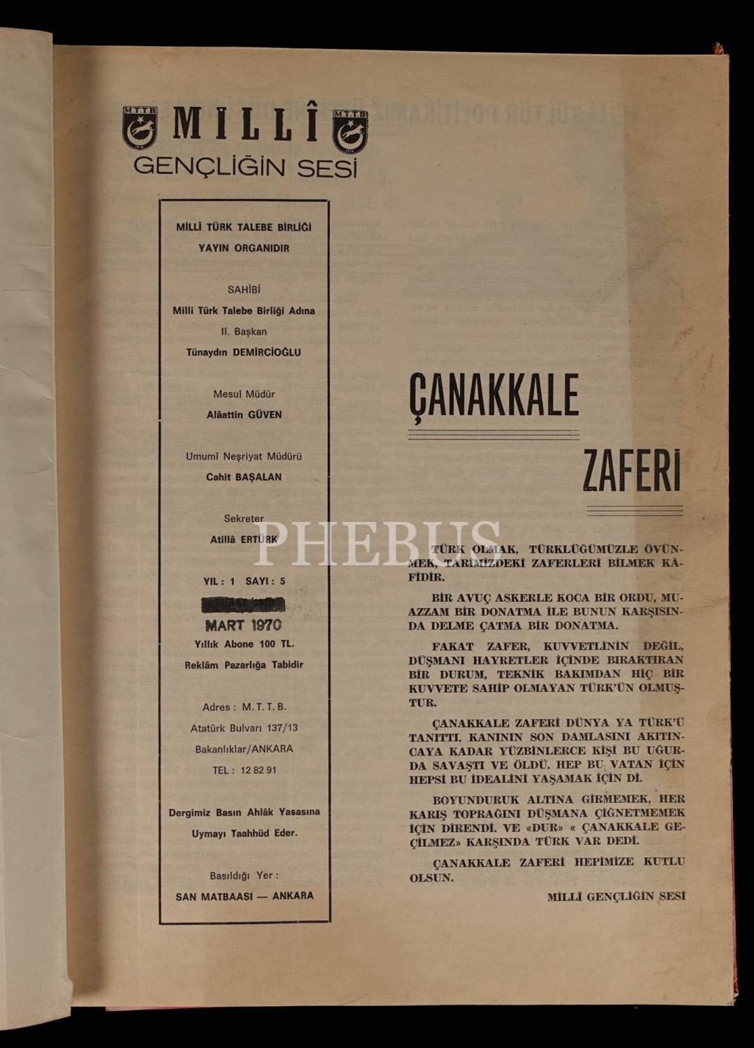 MİLLÎ GENÇLİĞİN SESİ dergisinin 1970 tarihli 5-14 tek ciltli sayıları, 24x32 cm...